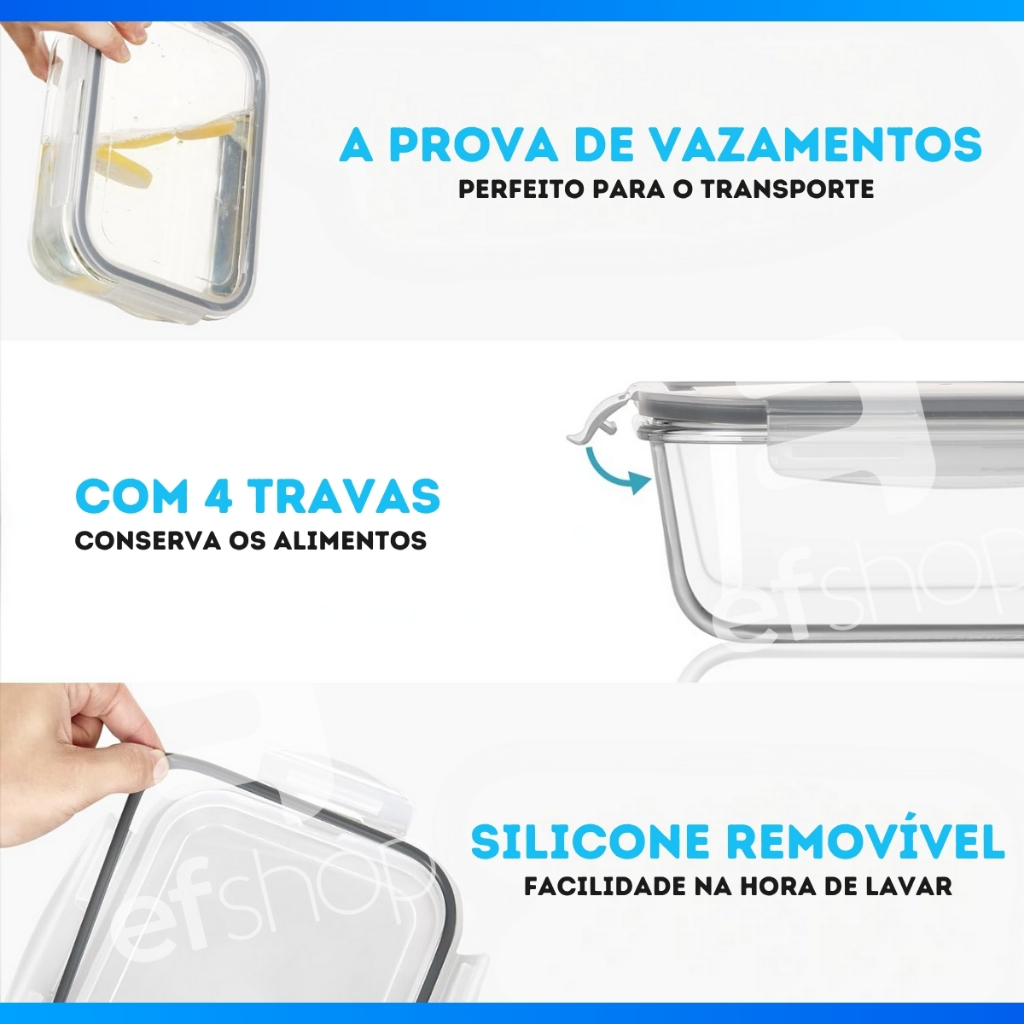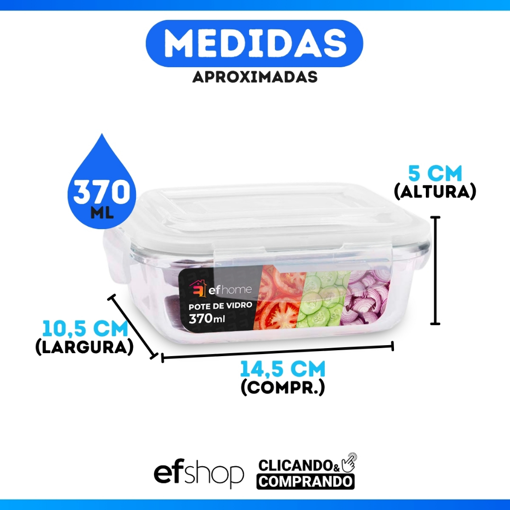 Pote De Vidro Hermético Borossilicato Marmita 370ml Tampa Plástica Com Vedação Alimento BPA FREE