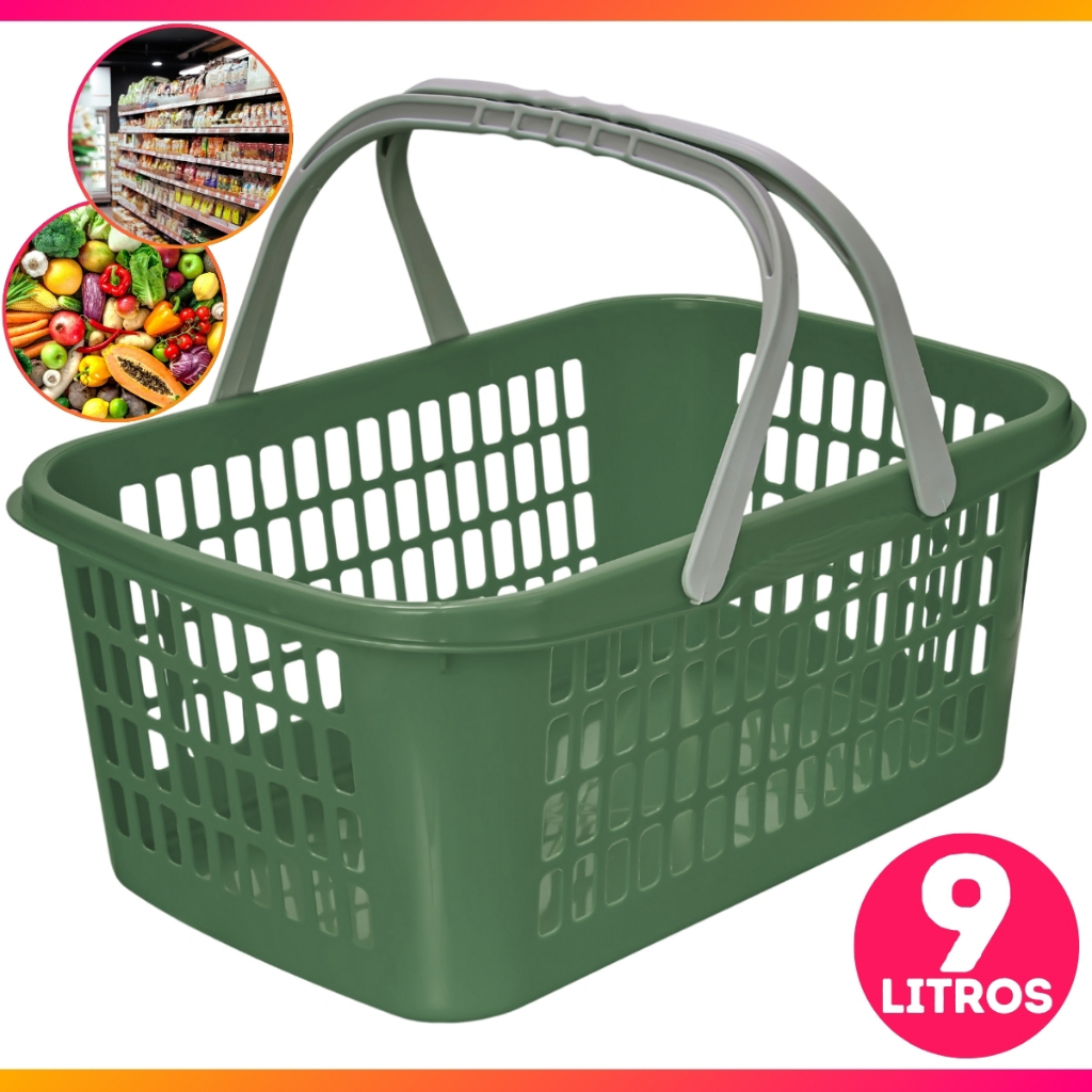 Cesta Cestinha Plastica Supermercado Com Alca 09 Litros