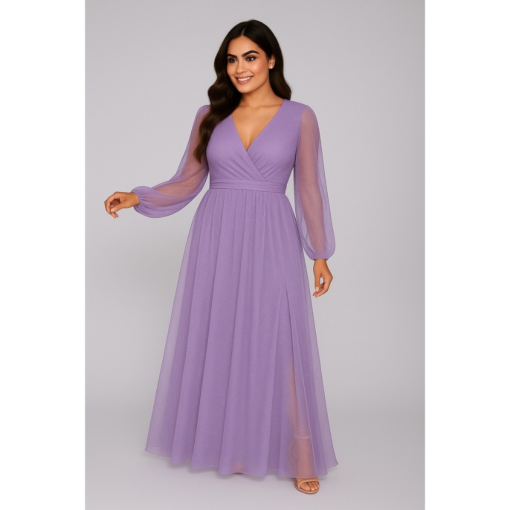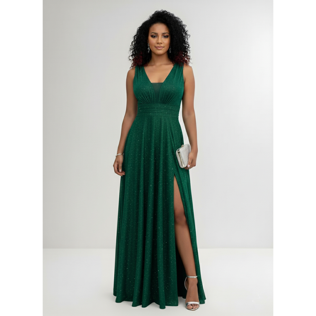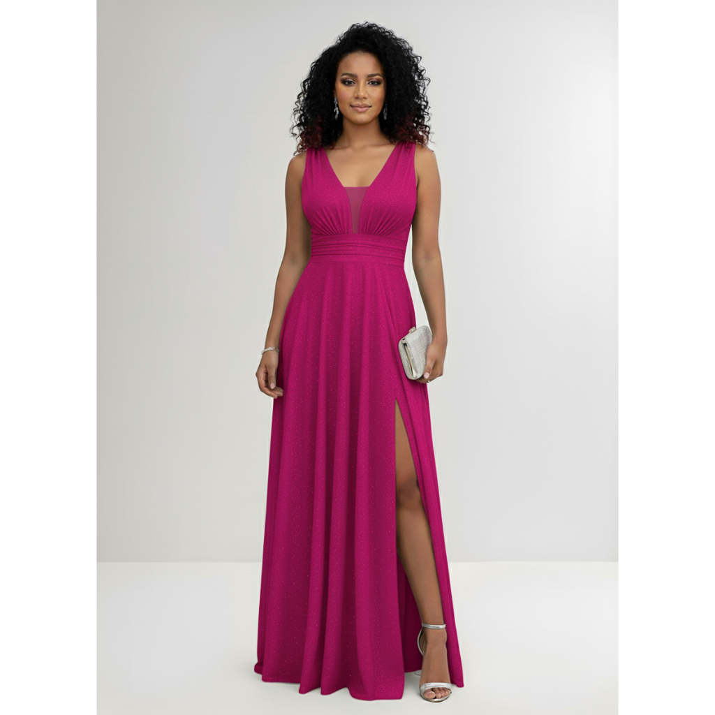 Vestido Longo Madrinha Tule Brilho Para Festa Com Fenda
