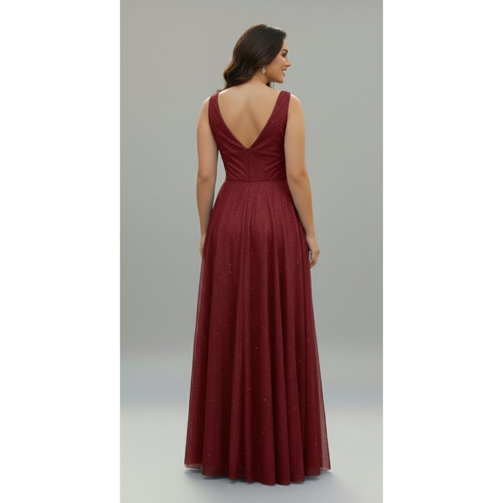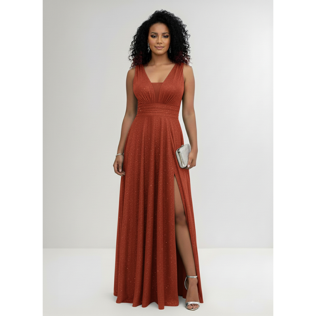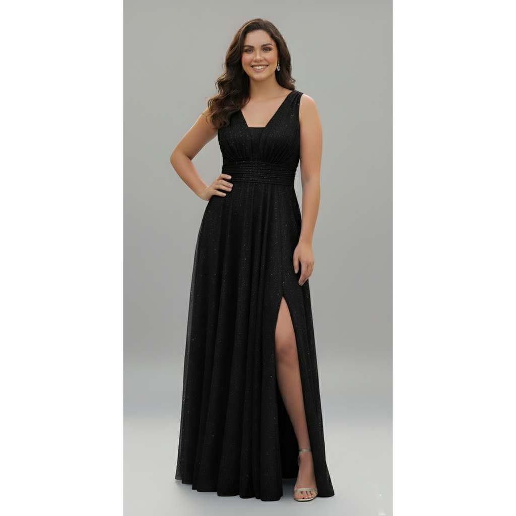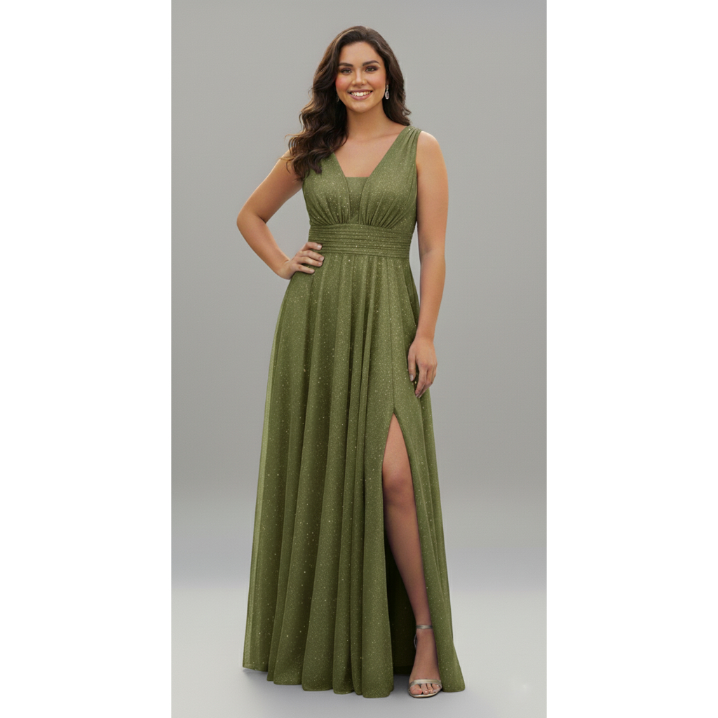 Vestido Longo Madrinha Tule Brilho Para Festa Com Fenda