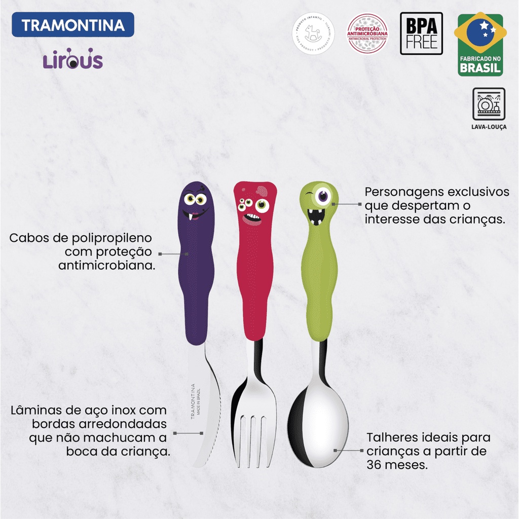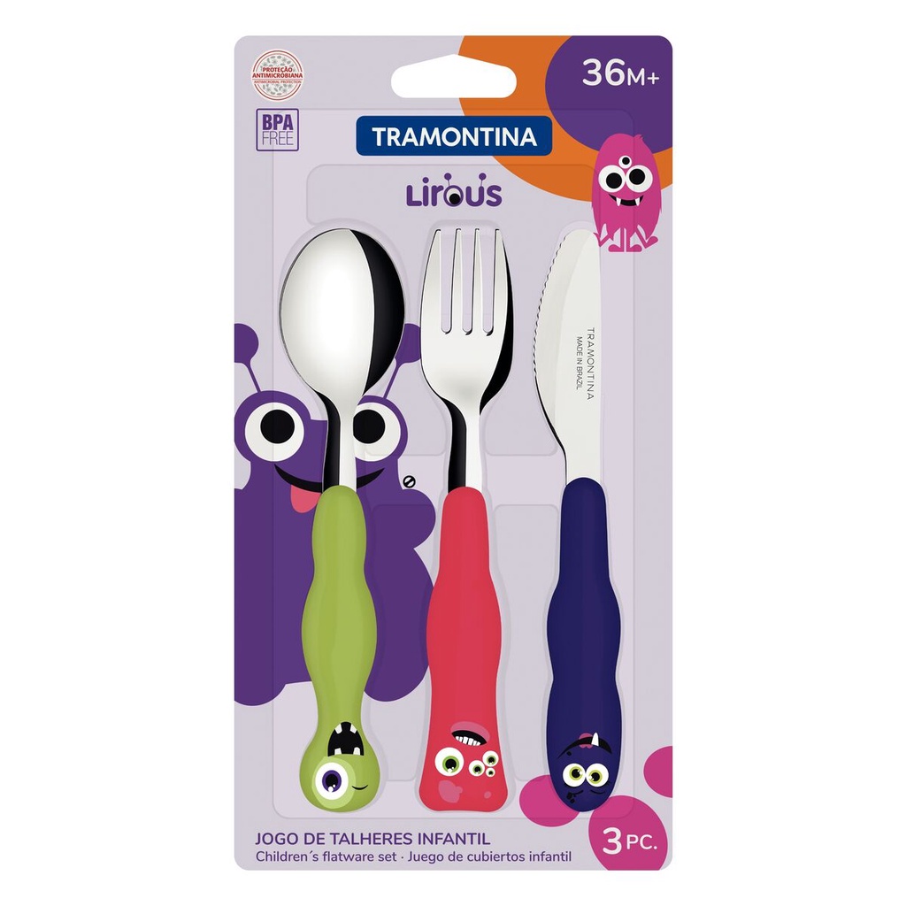 Jogo de Talheres Infantil Tramontina Colorido Aco Inox 3 Pcs
