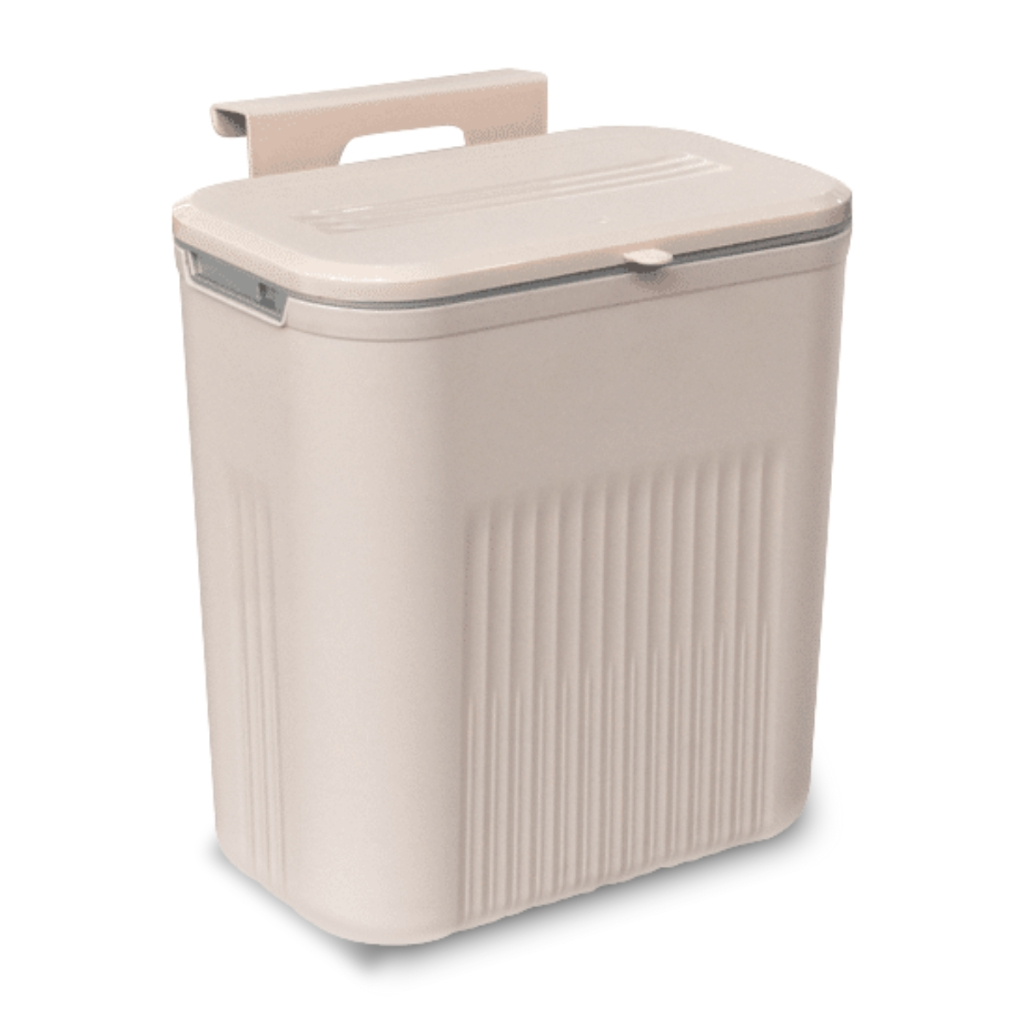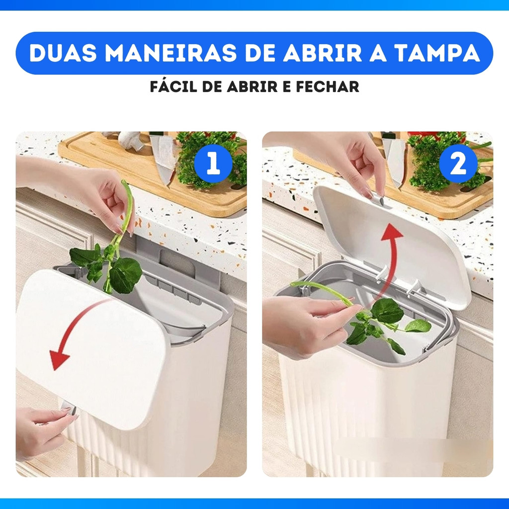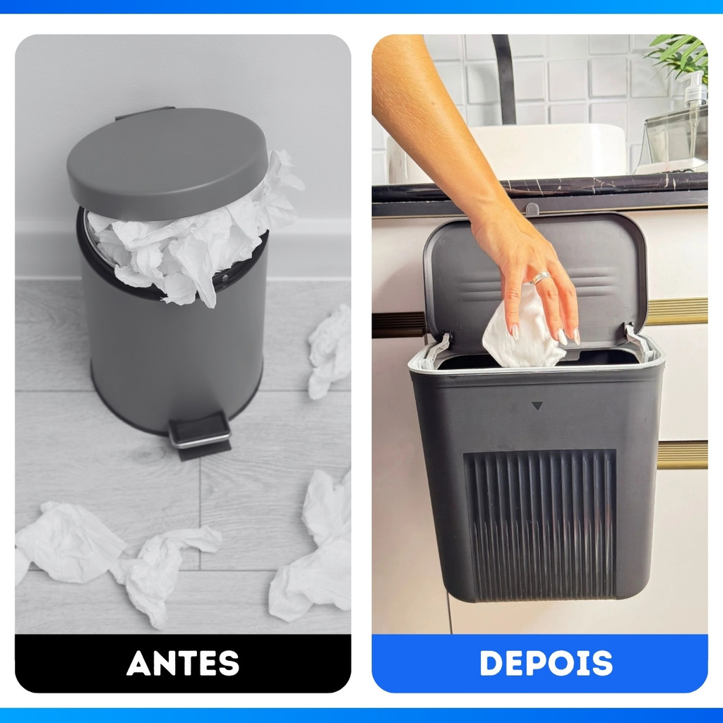 Lixeira Suspensa 9 Litros Com Tampa E Suporte Alto De Adesivos E Alça De Pentura Cozinha Banheiro