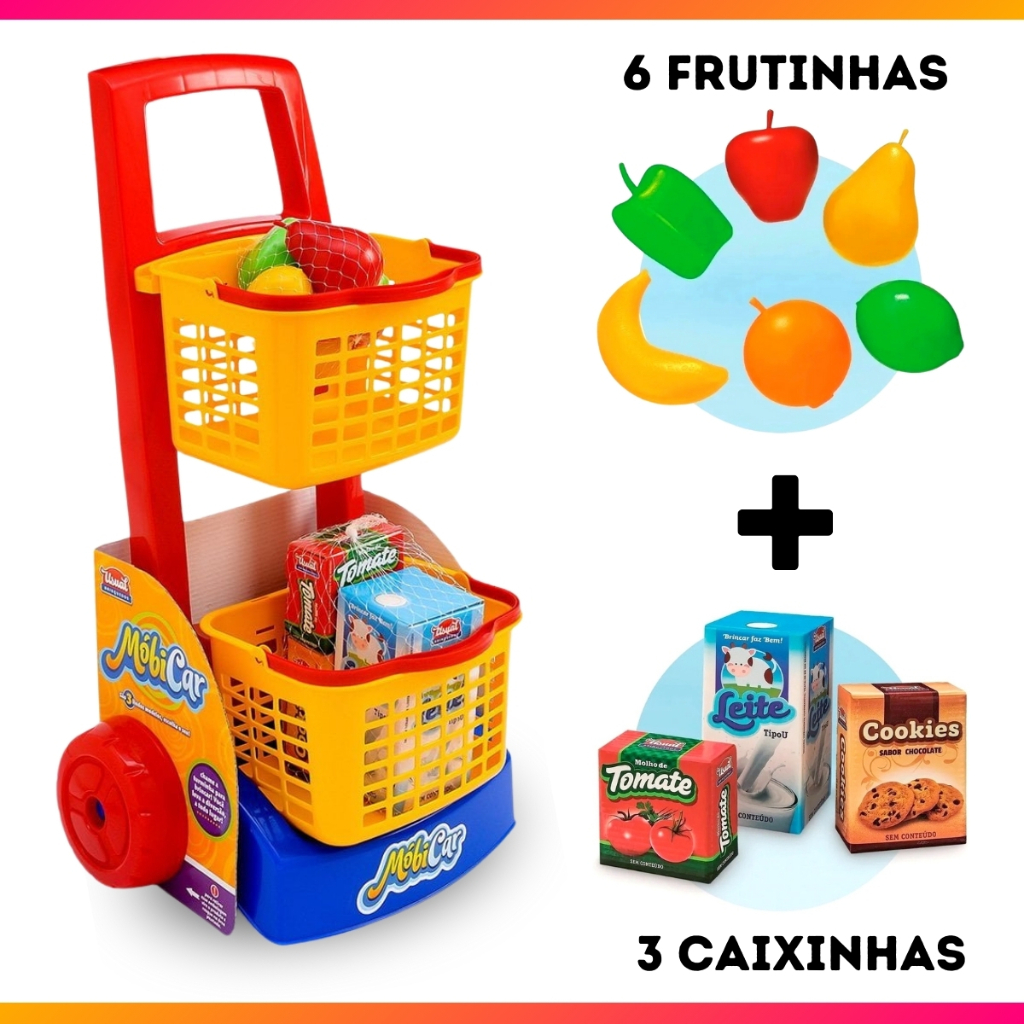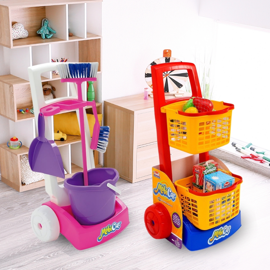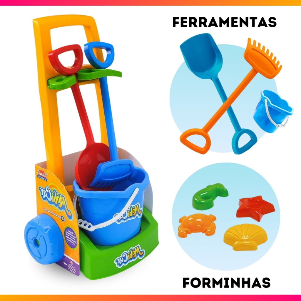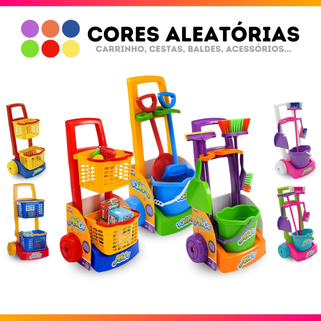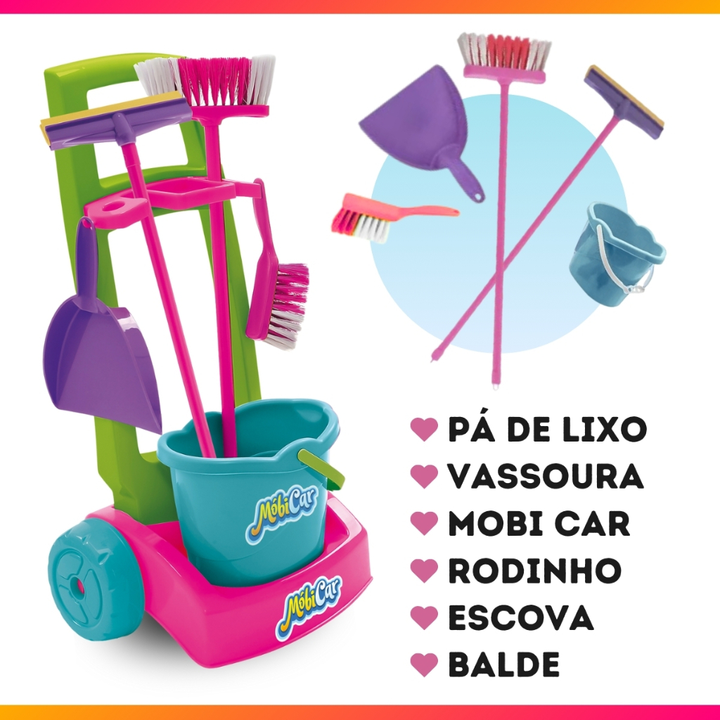 Brinquedo Infantil Variações Mercadinho Praia e Limpeza Dona de Casa Imaginação Faz de Conta com Acessórios Balde Rodo