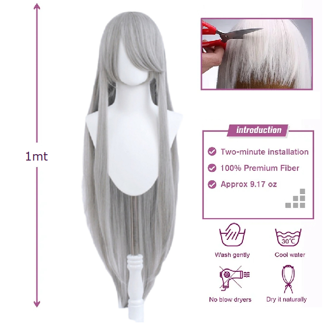 Peruca Cosplay liso 100cm cabelo orgânico Mangá Anime Fantasia diversas cores eBarty