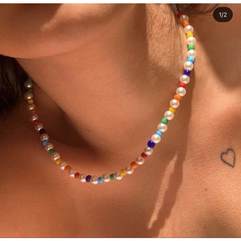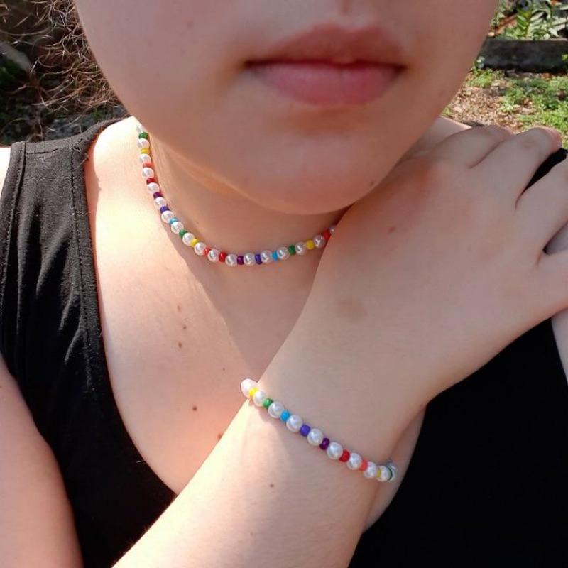 Colar Choker de pérolas com miçangas coloridas / Arco-íris - DAVITY