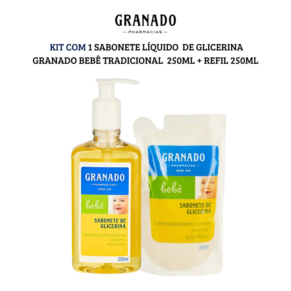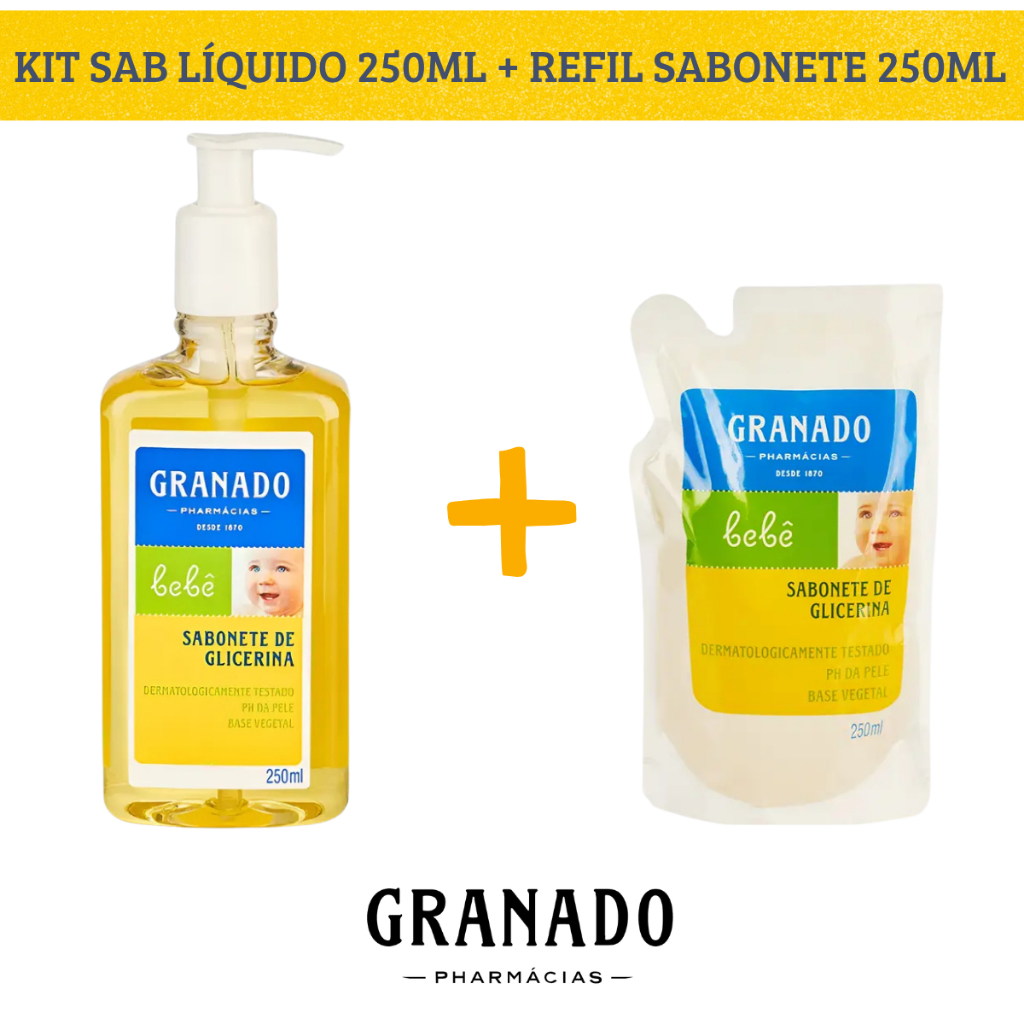 Kit Sabonete Líquido Granado Bebê Glicerina Tradicional 250ml + Refil 250ml