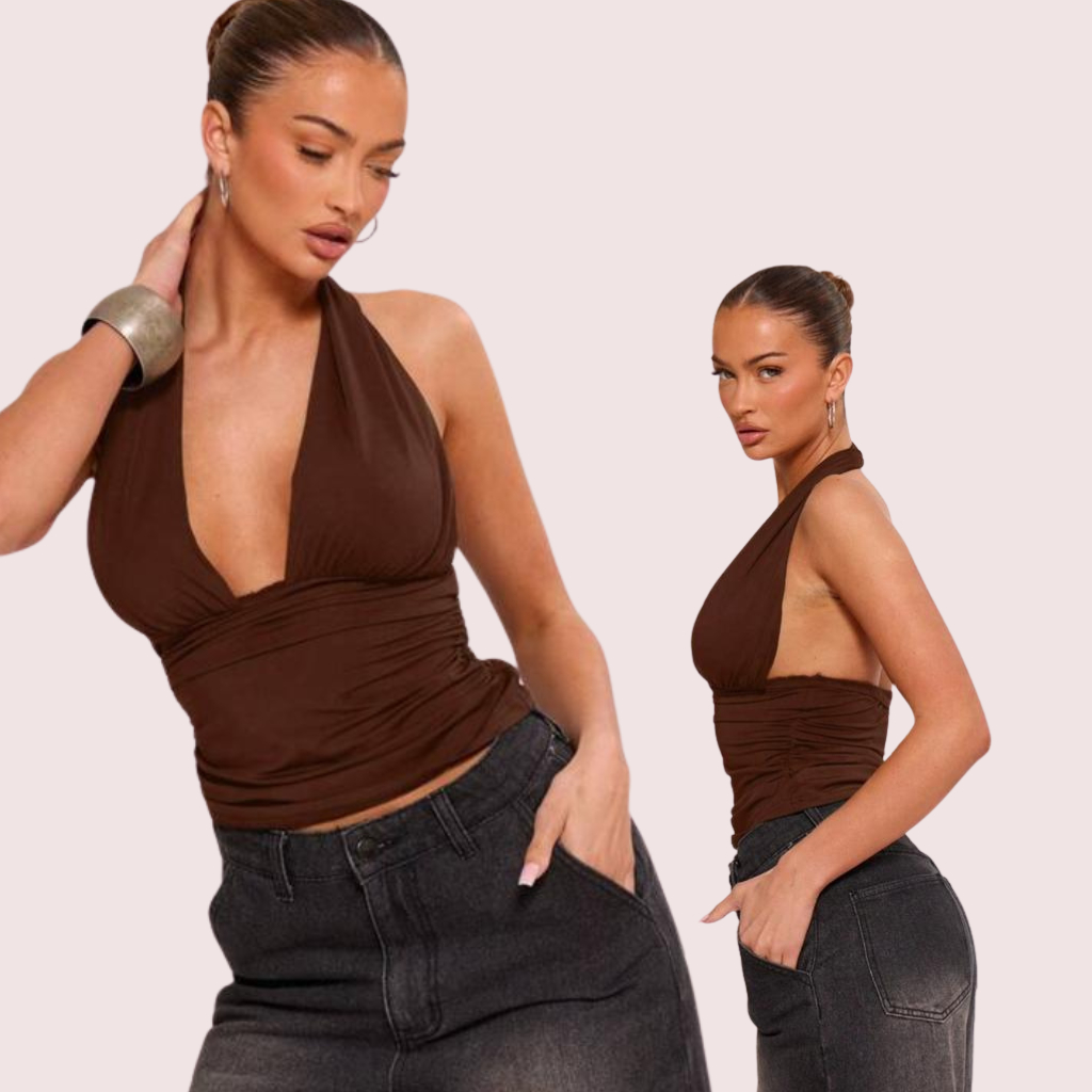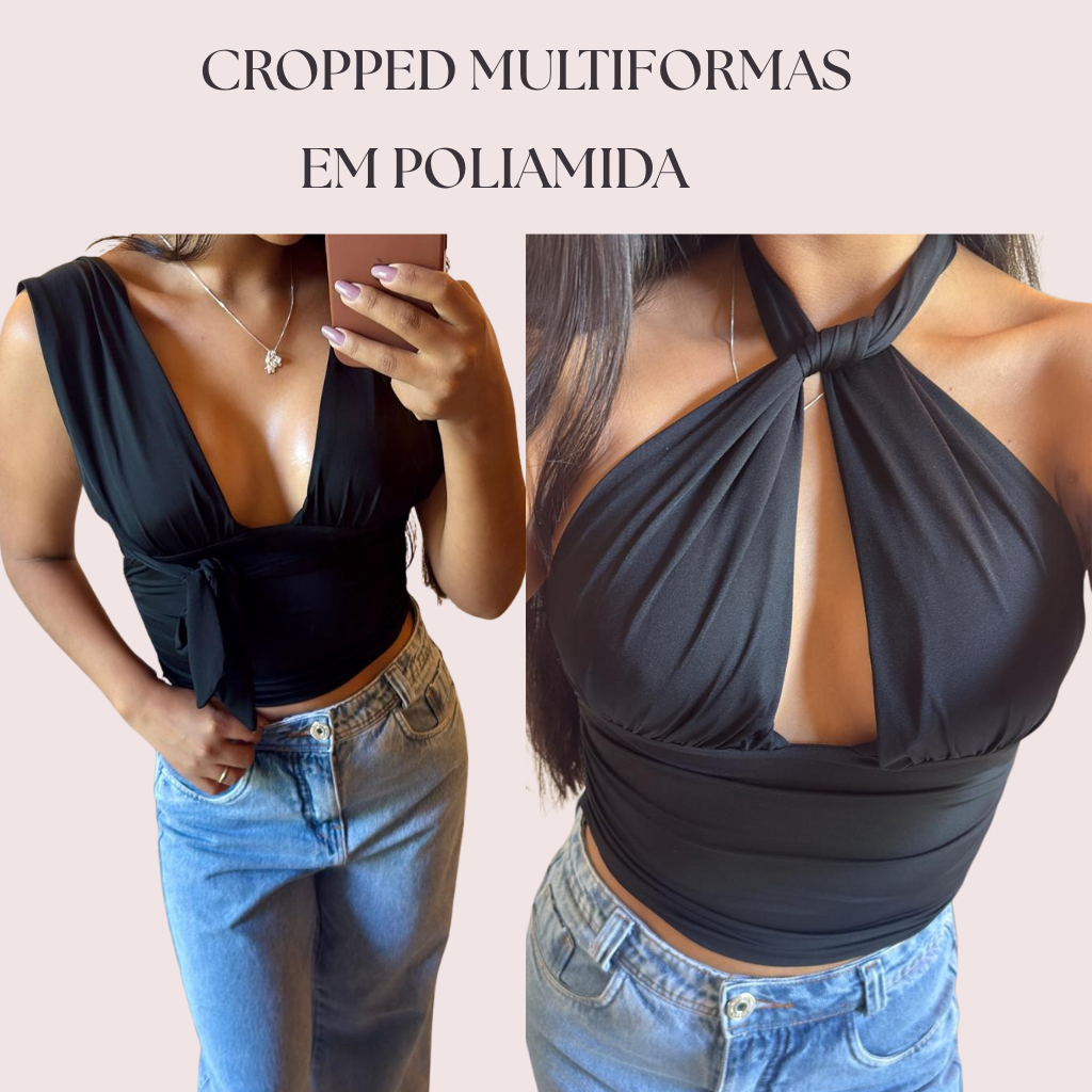 Blusa Cropped Com Amarraçao Multi forma Top Decote Festa Moda Gringa Decotado PoliamidaPremium Elegante Sustentaçao