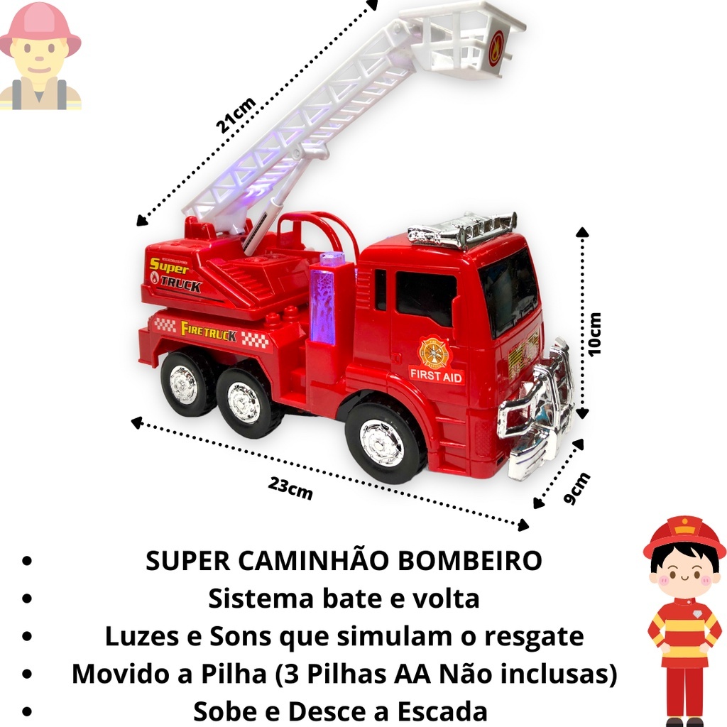 Caminhão brinquedo bombeiro grande luz sons escada movel