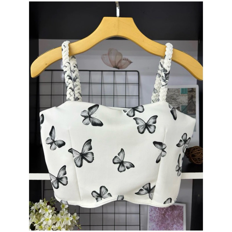 Cropped Top Trança Borboleta Cores Momento Barato Promoção Tendência Feminino Casual Festa Moda Modinha Roupa Mulher