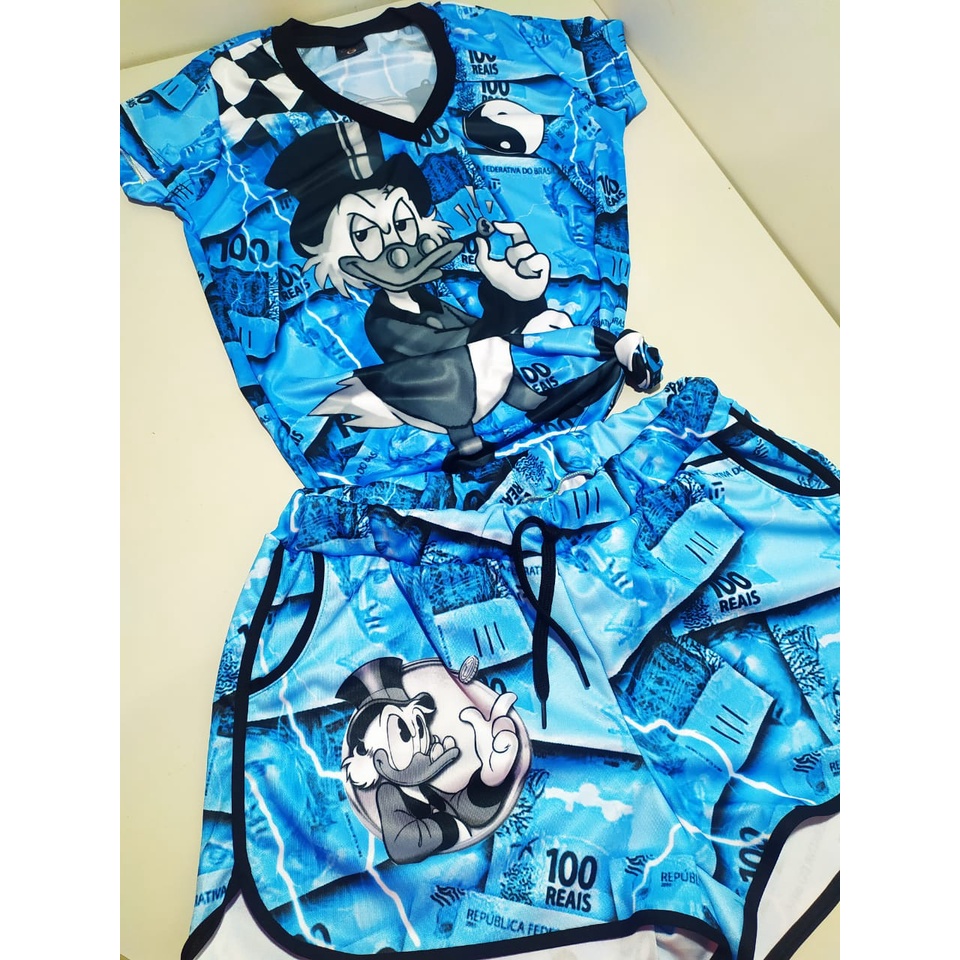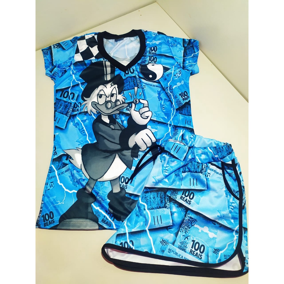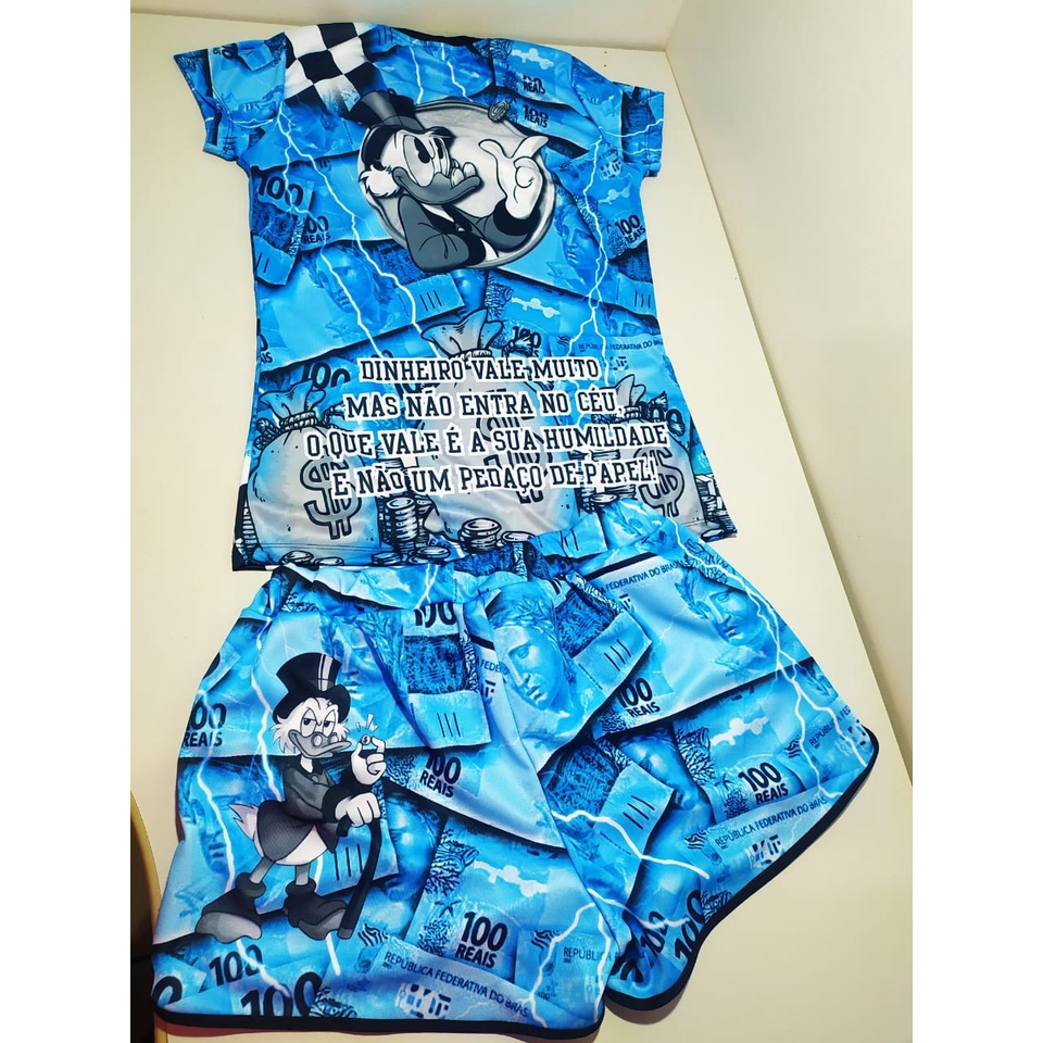 Kit Feminino Conjunto Qb34 Notas De 100 Reais Shorts e Baby Look