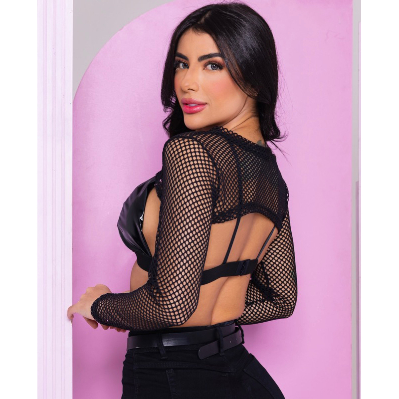 Top boleiro arrastão de compor tendência moda blogueira estiloso