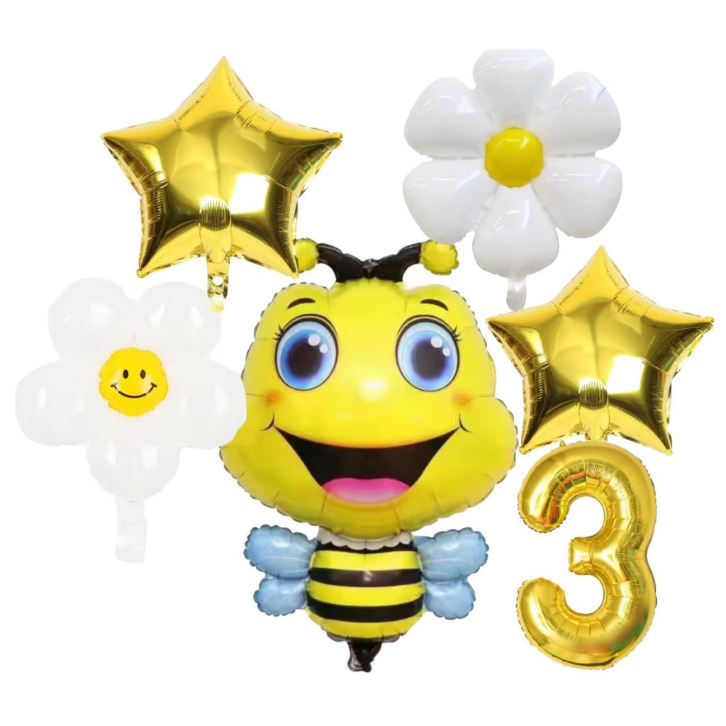 KIT 6 BALÃO METALIZADO ABELHA MARGARIDA FLOR ABELIINHA