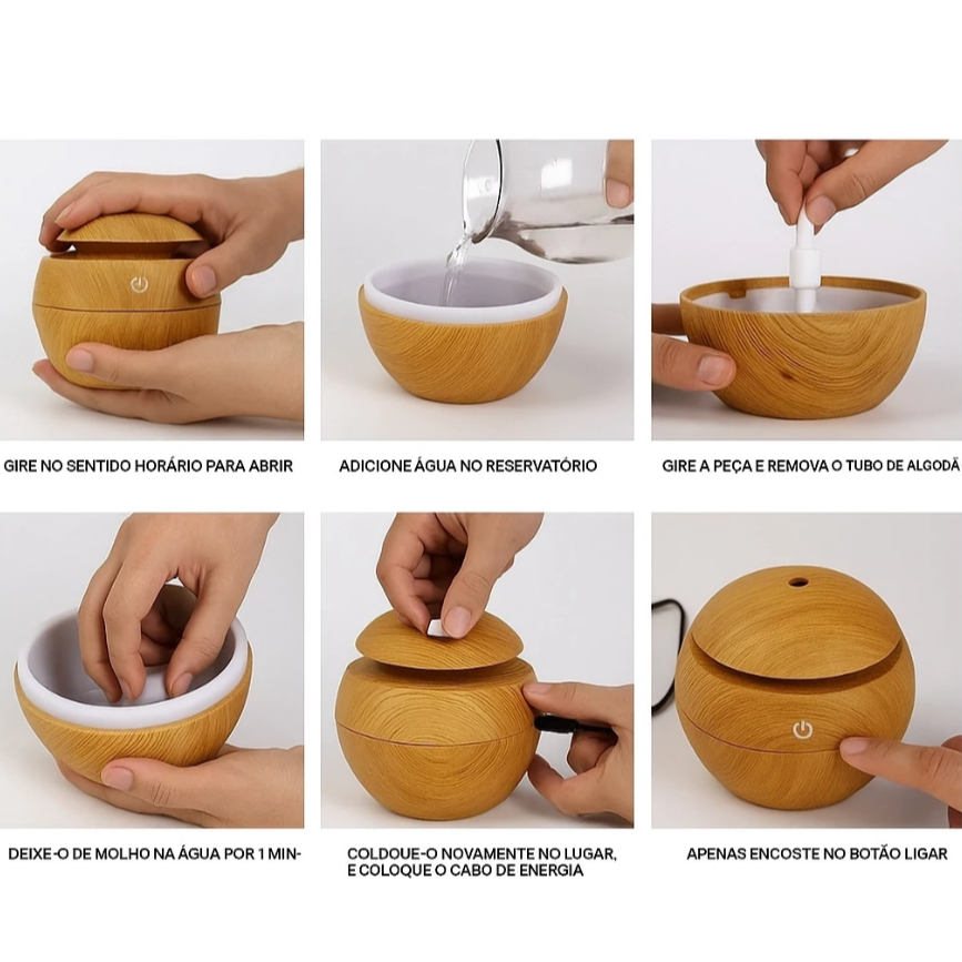 Mini Difusor Ultrassonico Umidificador Ar Aromatizador Purificador De Aromas Com Led Oleo Essencial