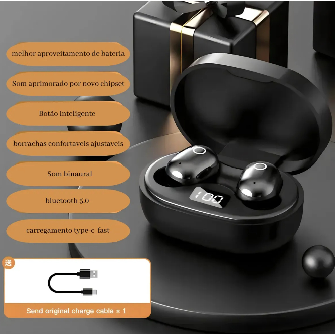 Fone De Ouvido Bluetooth 5.0 Par Sem Fio Duplo Top Led Visor