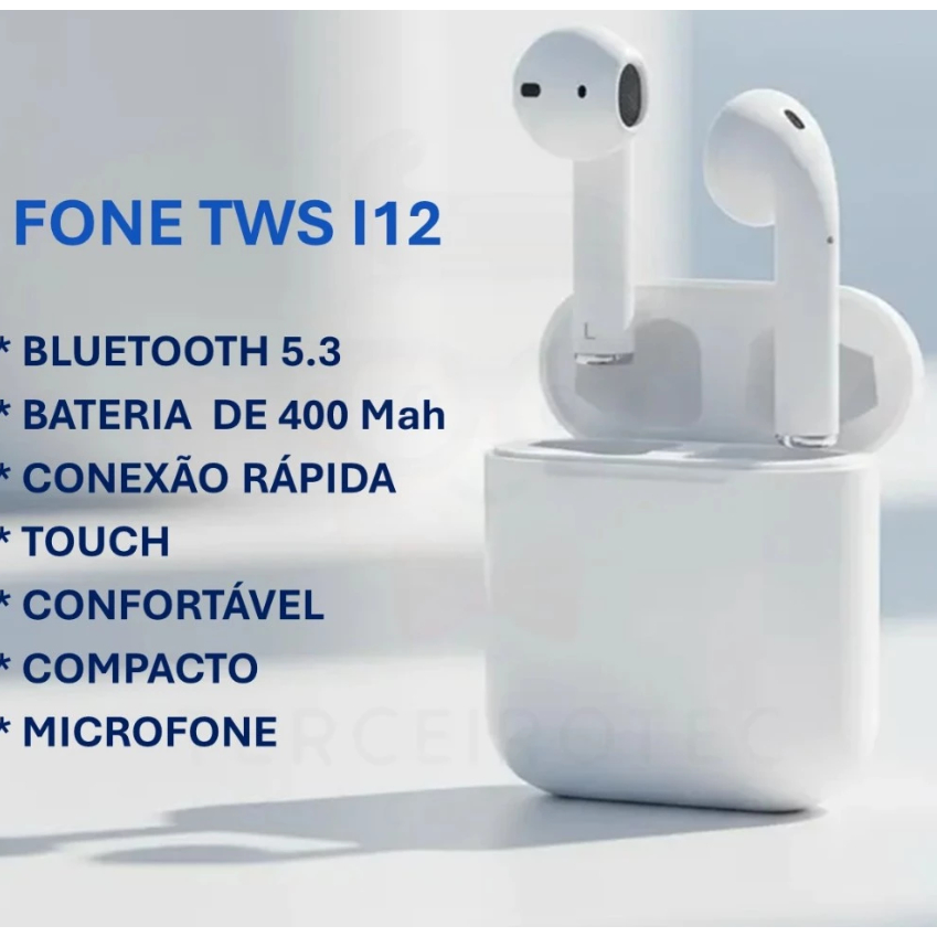 Fone De Ouvido Bluetooth Sem Fio I12 Touch Original Earphone TWS Anatel