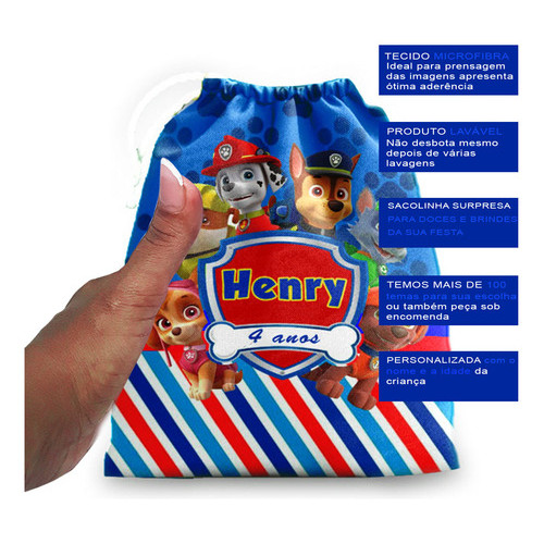 10 Sacolinhas Personalizadas de tecido festa de aniversário Patrulha Canina Azul E Vermelha