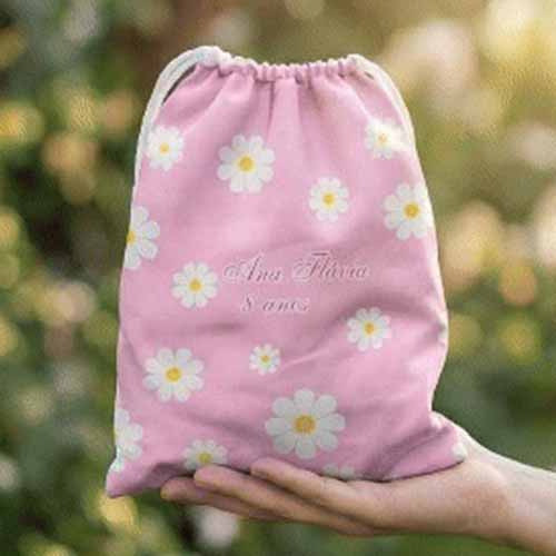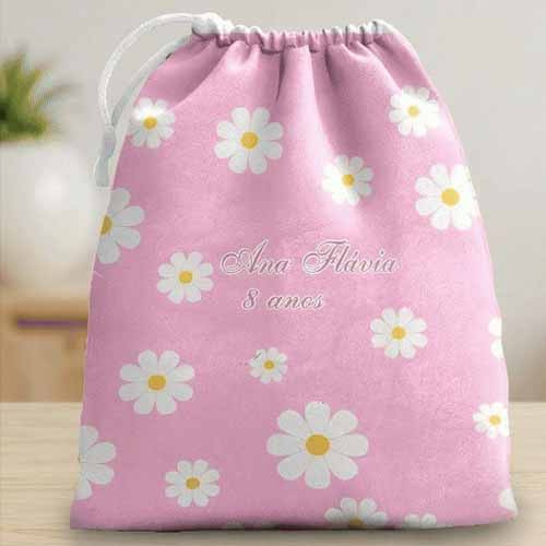 10 sacolinhas personalizada tecido MARGARIDAS ROSA para lembrancinhas festa aniversario 30cmx20cm
