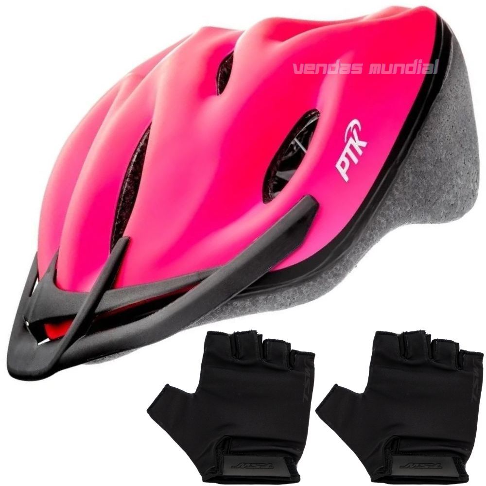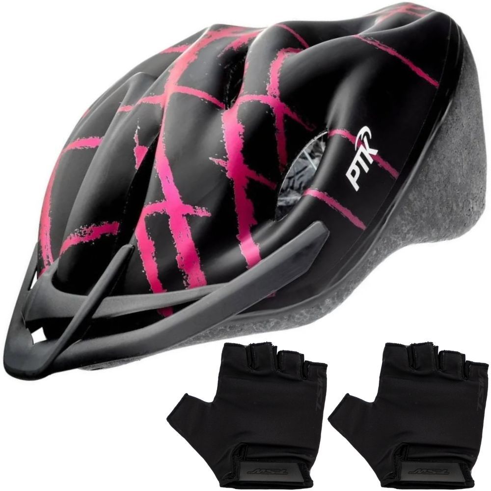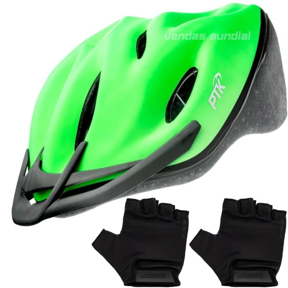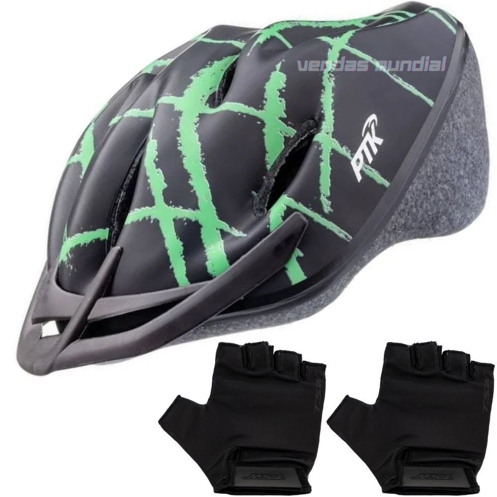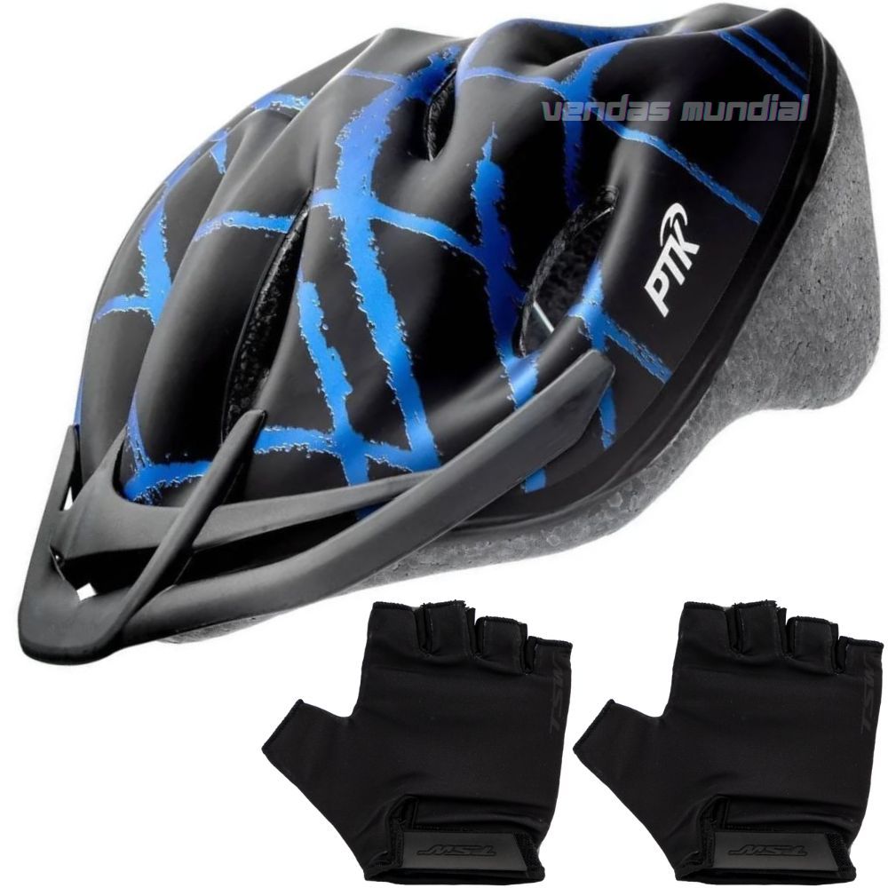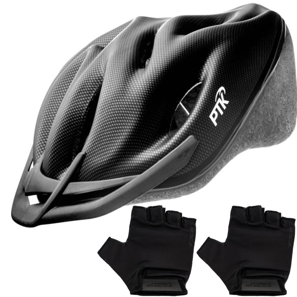 Capacete Ciclismo Feminino Masculino Bike Ptk Ajustável Com Viseira + Par de Luvas