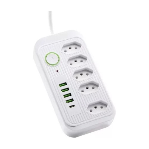 Extensão Filtro De Linha Segurança 5 Tomadas 4 Usb E Usb C