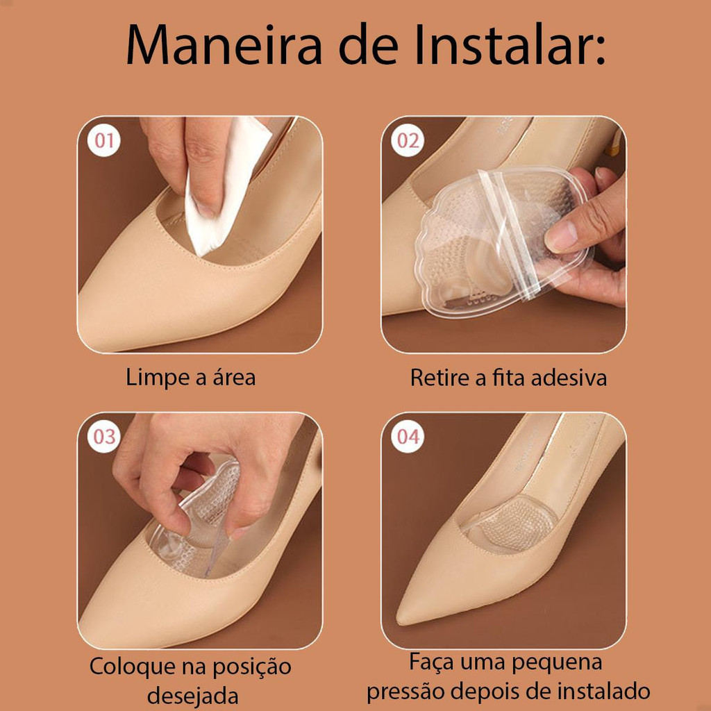 Kit Pares Palmilha Gel Silicone Antiderrapante Engonômica Adesiva Conforto Para Pés Anti Impacto