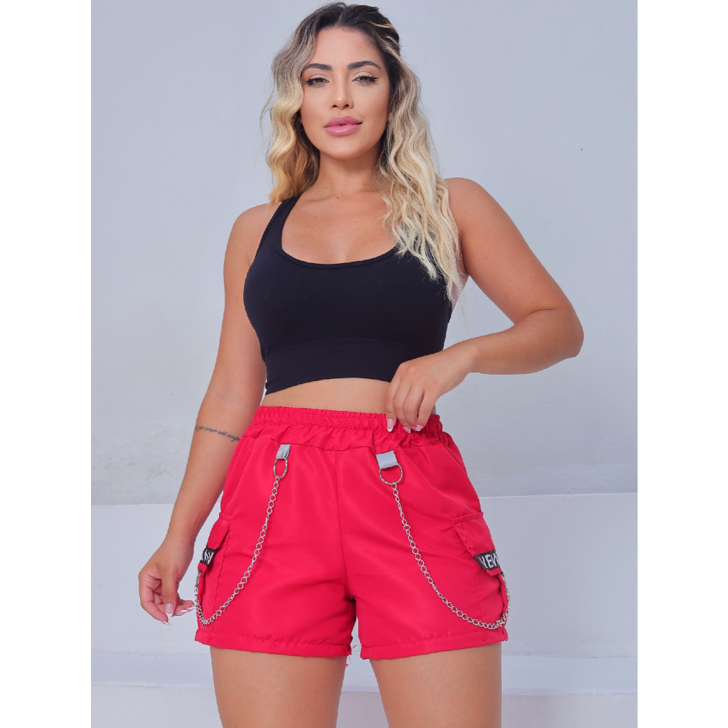Short Shortinho Feminino Cargo PREMIUM Tactel FERNANDA Moda Gringa New York Bolsos Laterais
