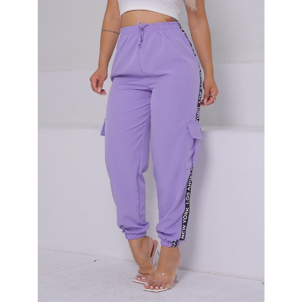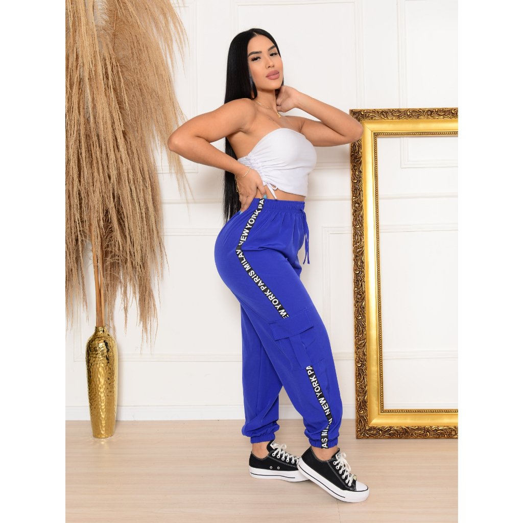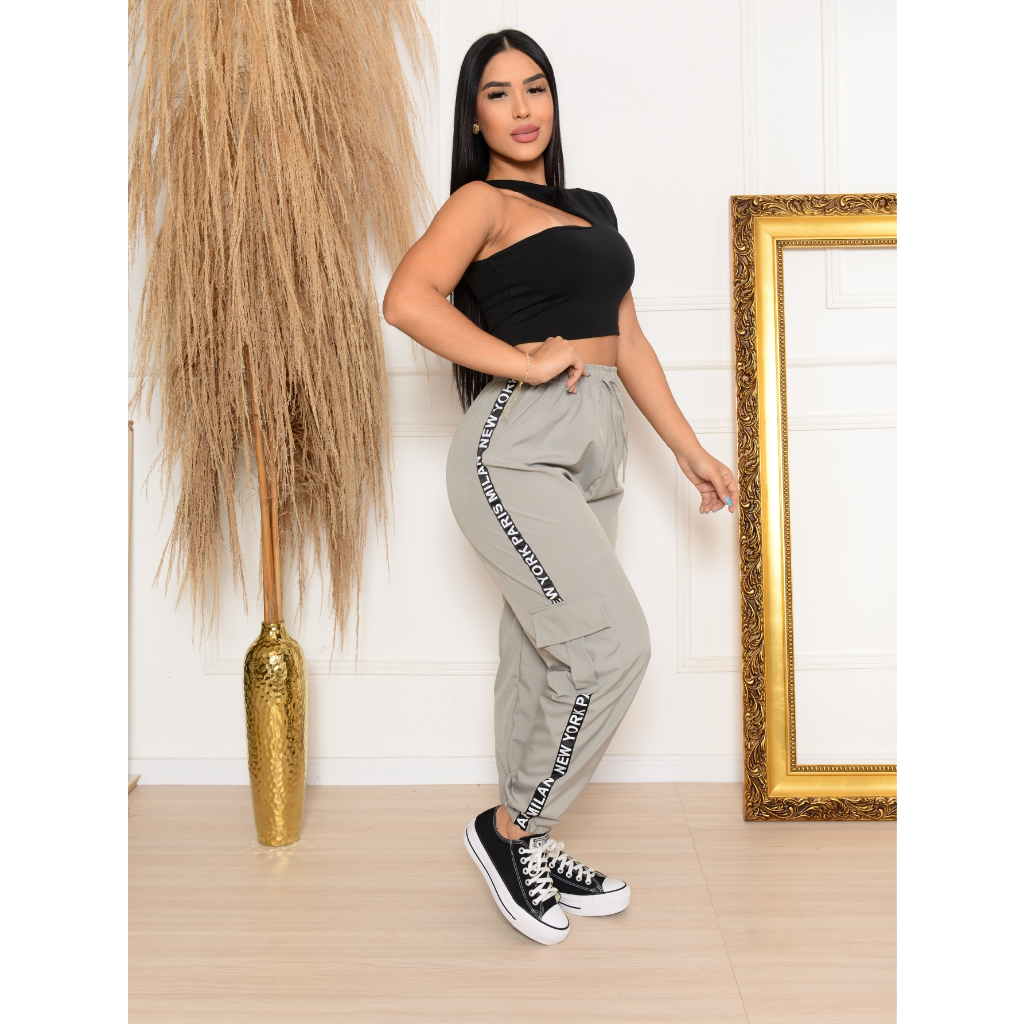 Calça Cargo Jogger Feminina Tactel Com faixa lateral paris neon