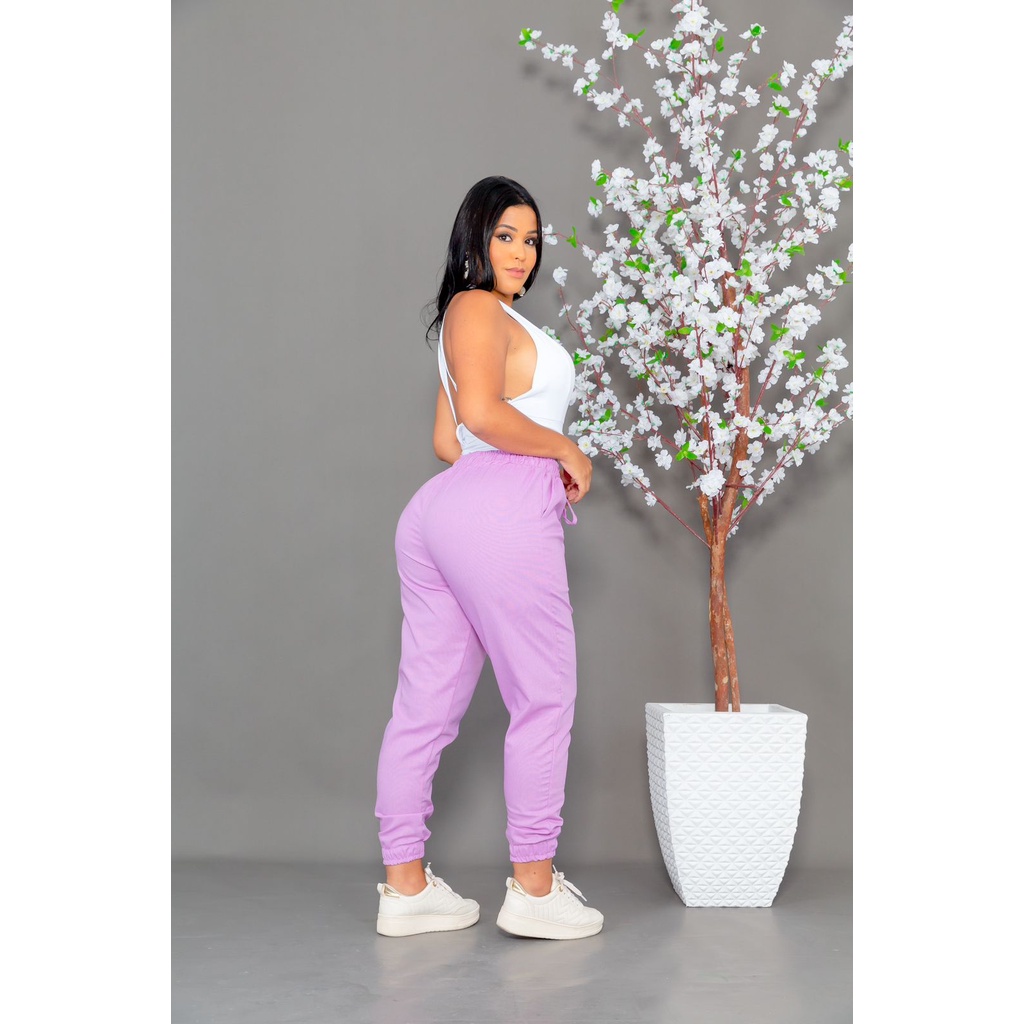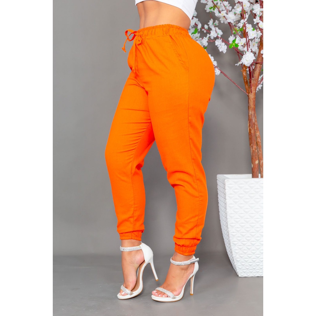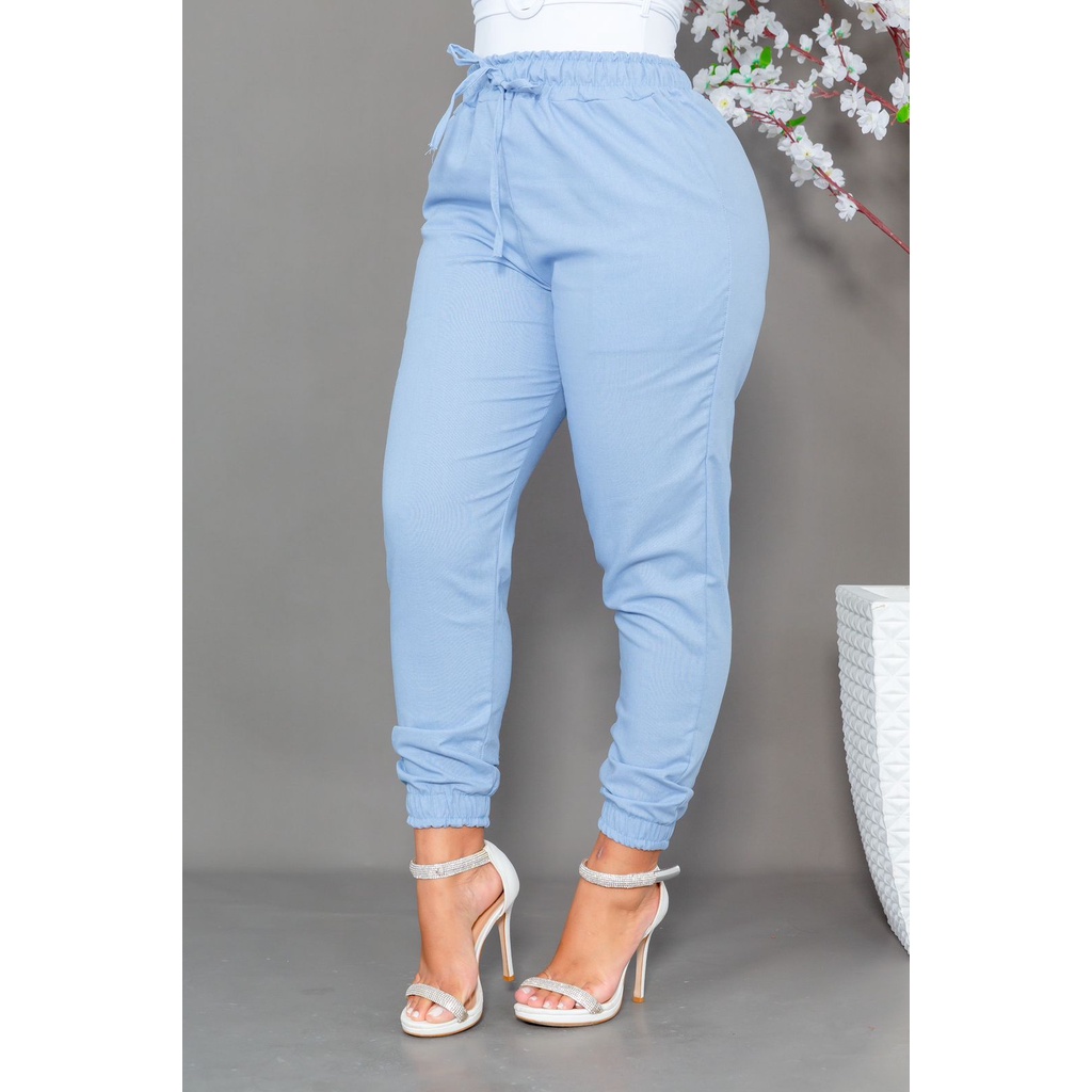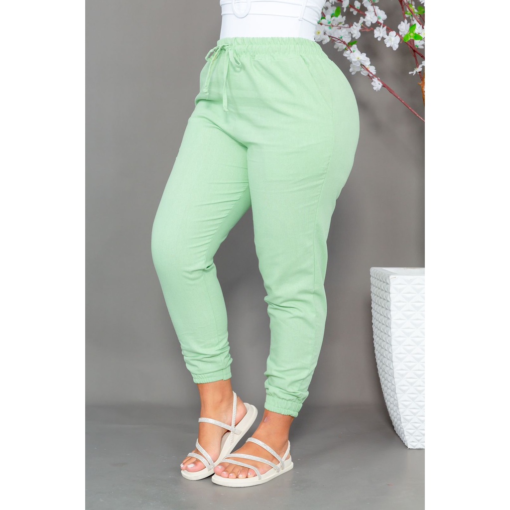 Calça Jogger Feminina Linho Com Bolso Cordão Tendência BLOGUEIRINHA