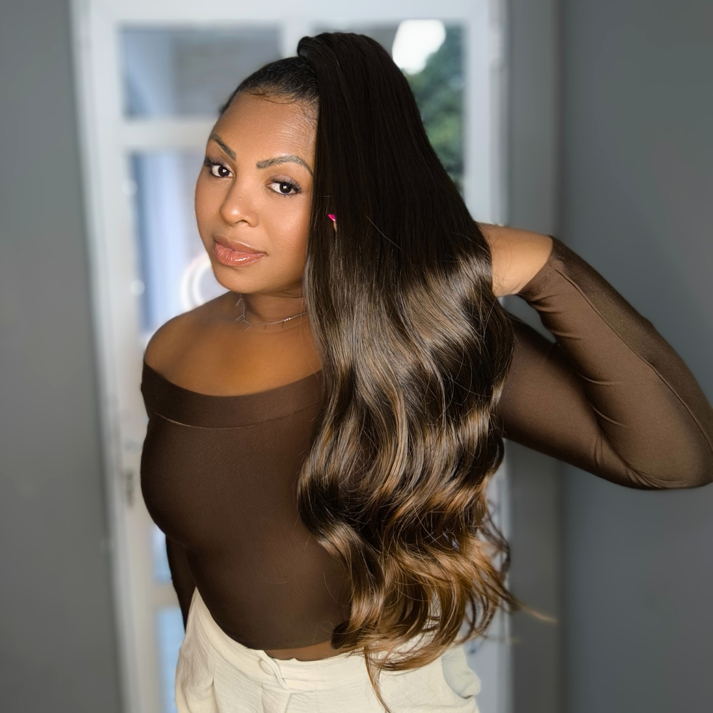 Aplique de cabelo fibra futura ondulado cor mel