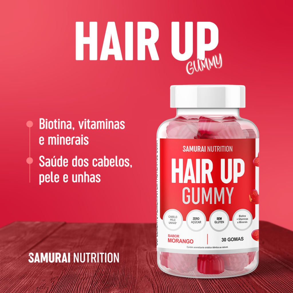 Kit 1x Creatina Gummy 60 gomas + Hair Up Gummy 30 gomas Morango - Samurai Nutrition