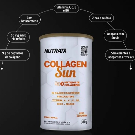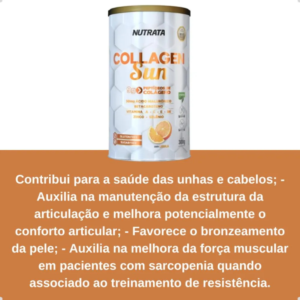 Collagen Sun Colageno 300g Laranja - Nutrata - Com Acido Hialuronico