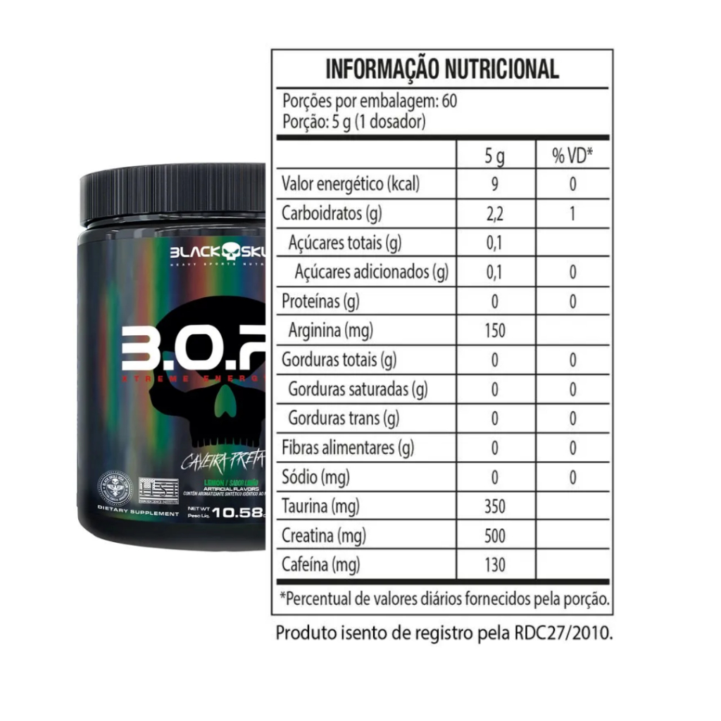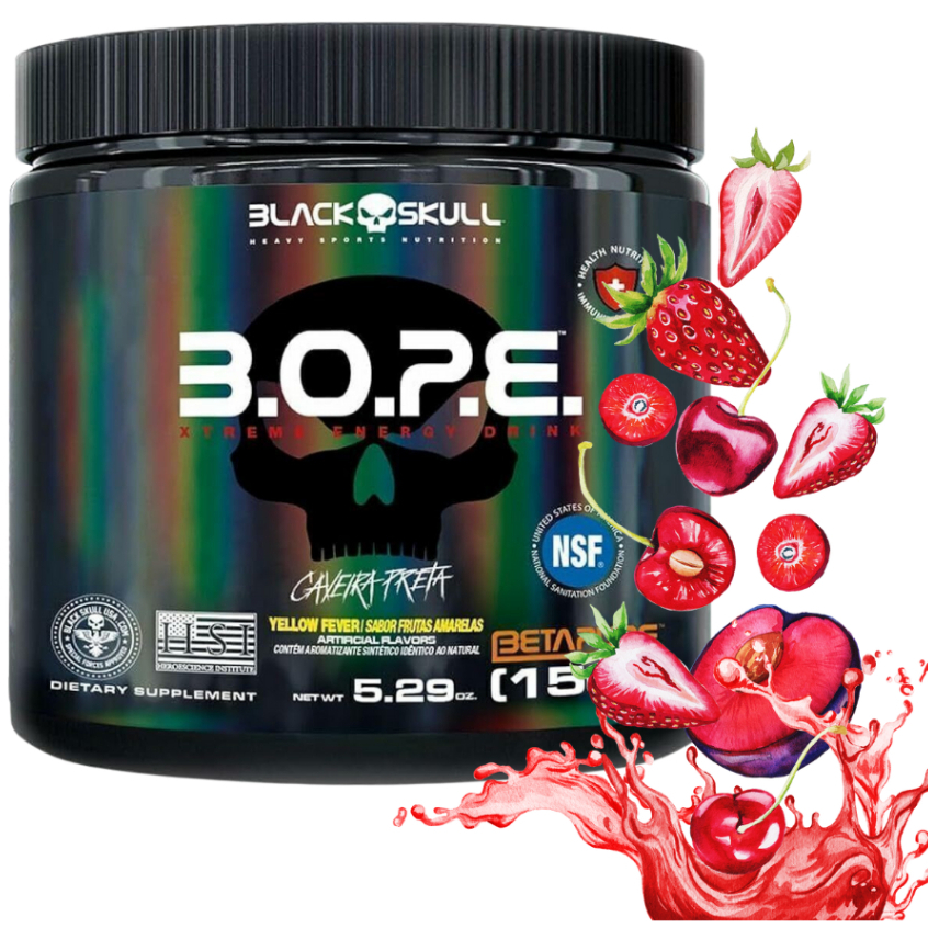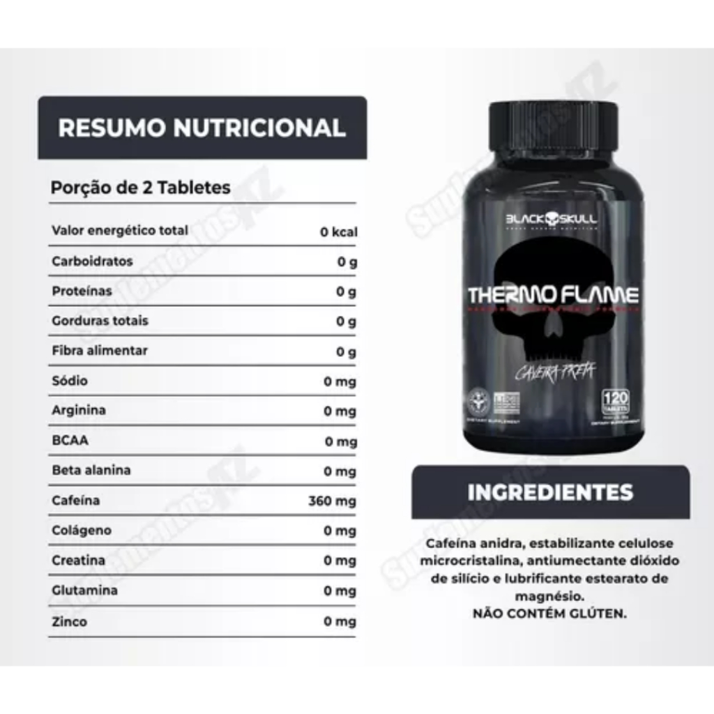 Kit Pre Treino Bope 150g Black Skull + Thermo Flame 60 Tabletes + Coqueteleira 600ml Samurai