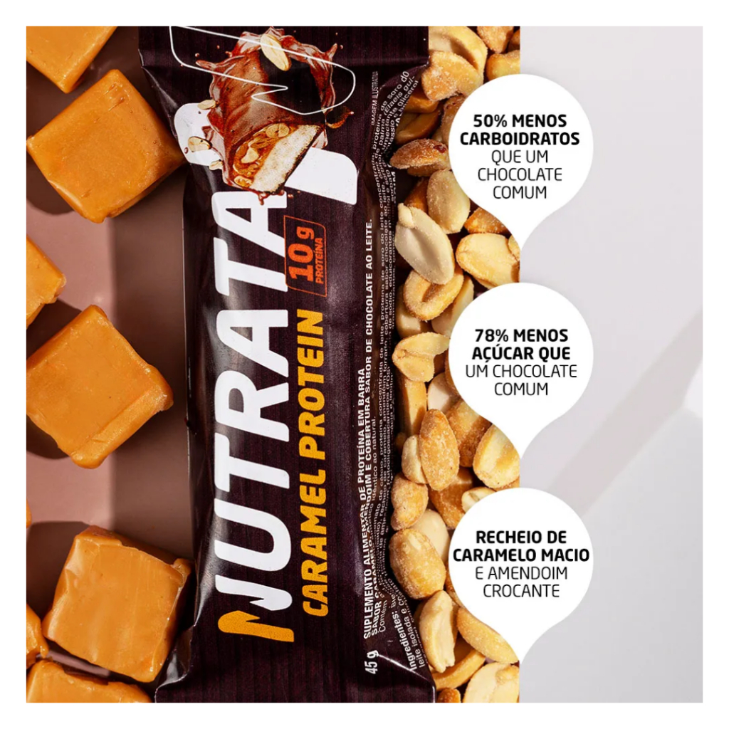 Barrinha Proteica NUTRATA Display 12 UND 45G - Nutrata Caramel e Dark Caramel