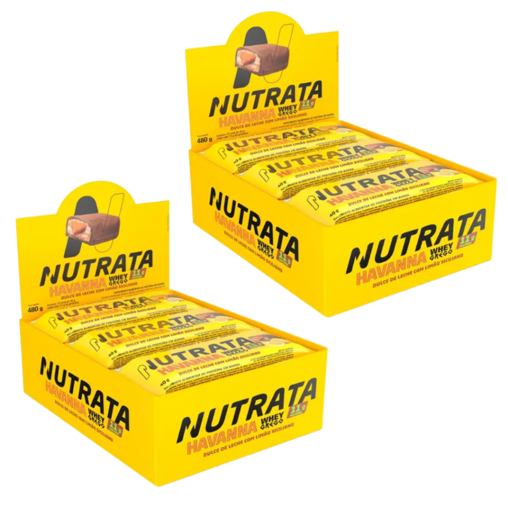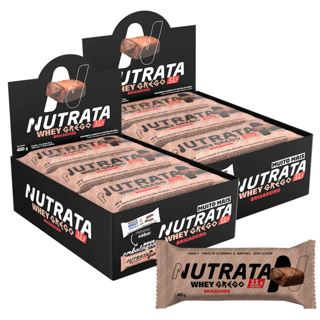 Kit 2x Whey Grego Barrinha de Proteína Display c/ 12 UND 480g - Nutrata