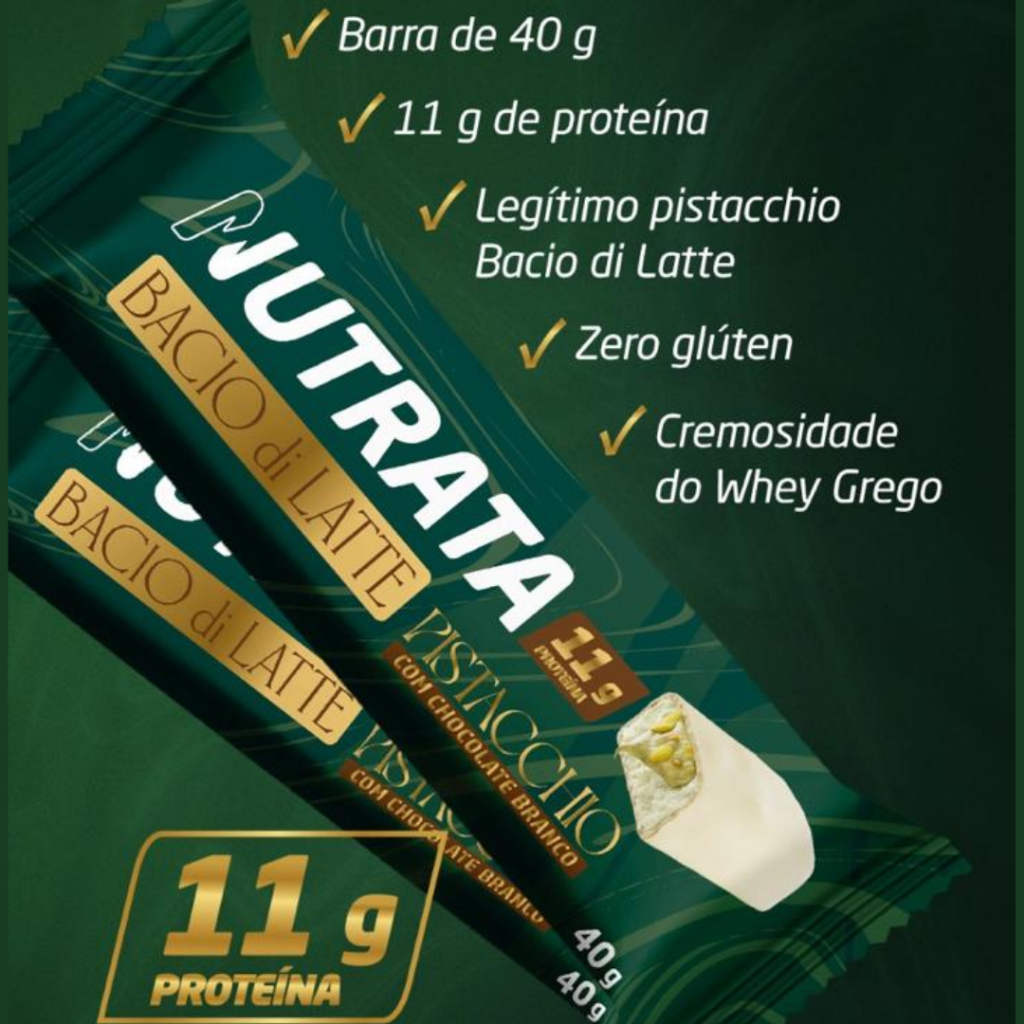 Pistache Bacio di Latte Barrinha de Proteína Display c/ 12 un (40g) - Nutrata