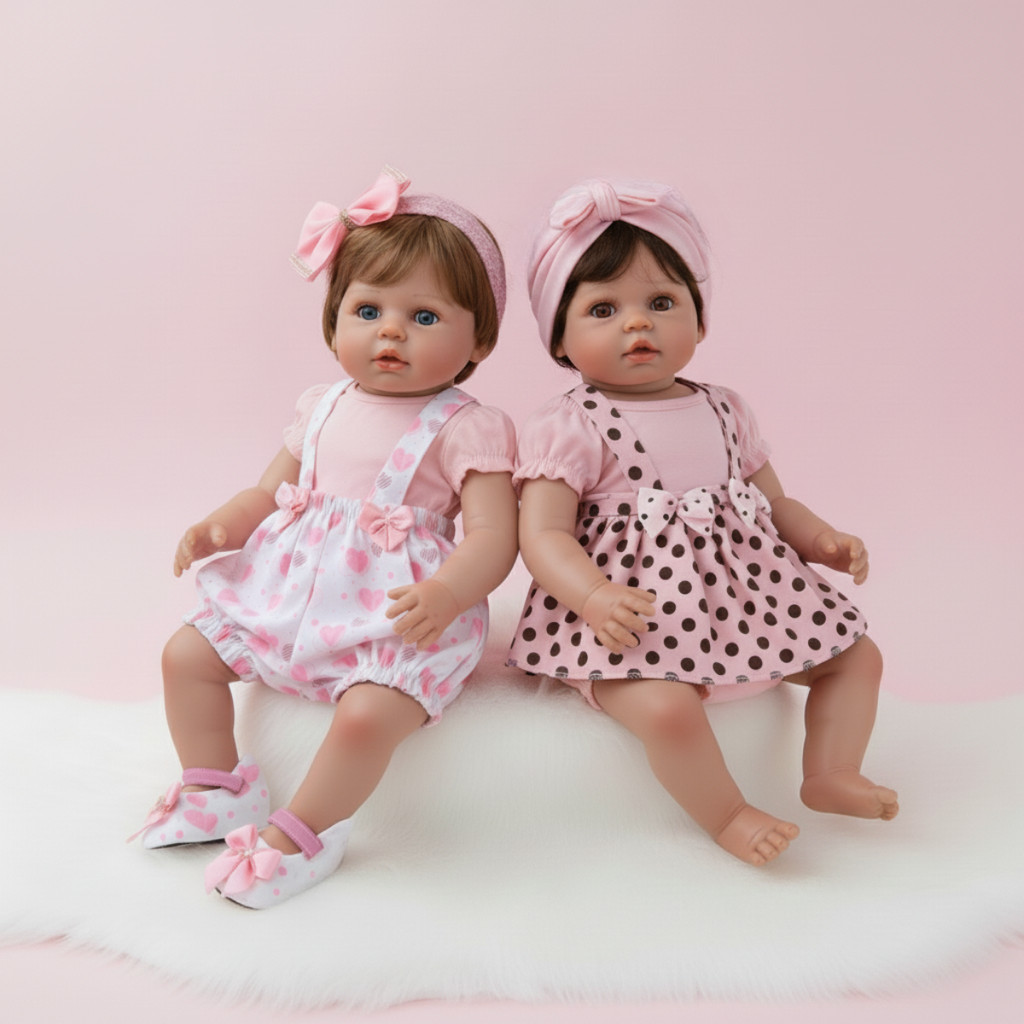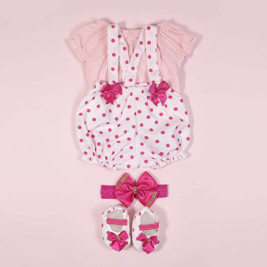2 Kits Roupinha Bebê Reborn Jardineira + Sapato + Tiara + Turbante - 8 peças