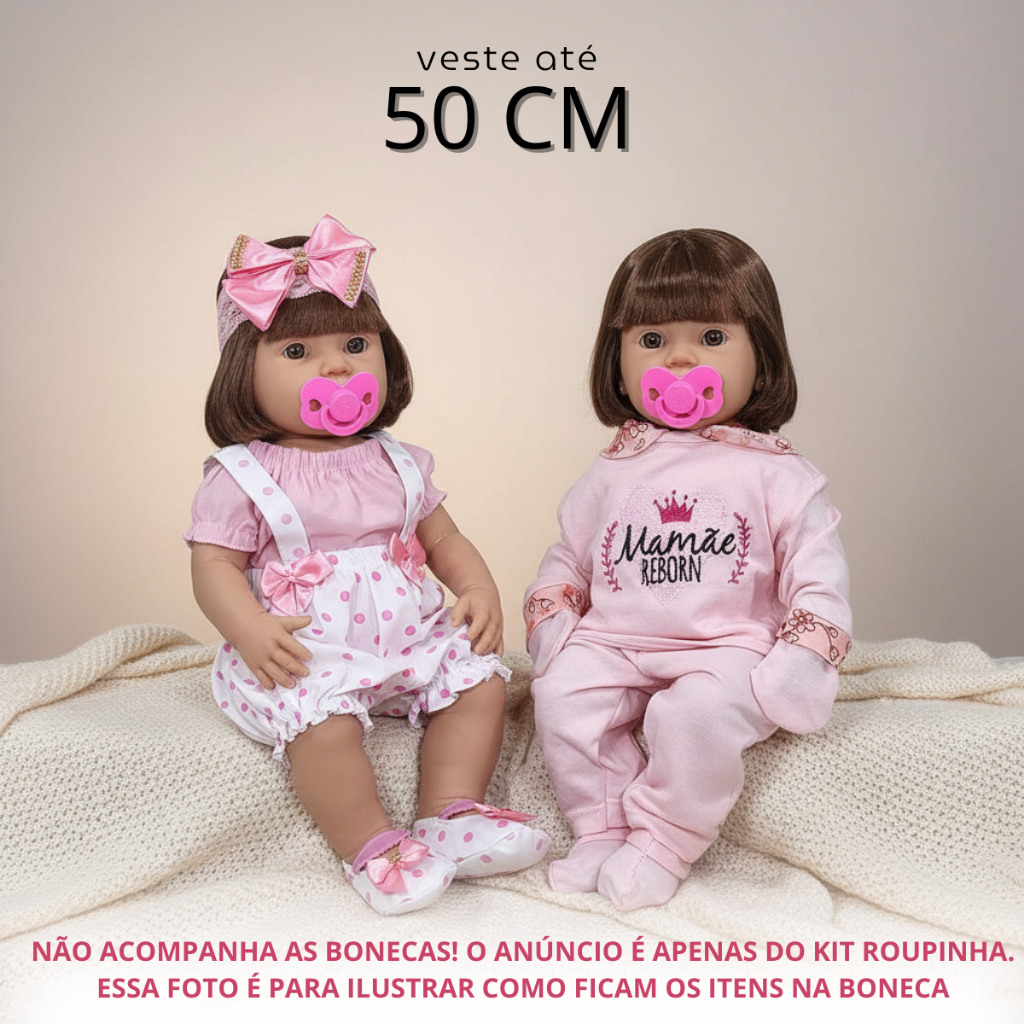 Kit Roupa Boneca Bebe Reborn + Pijama + Tiara + Sapatinho
