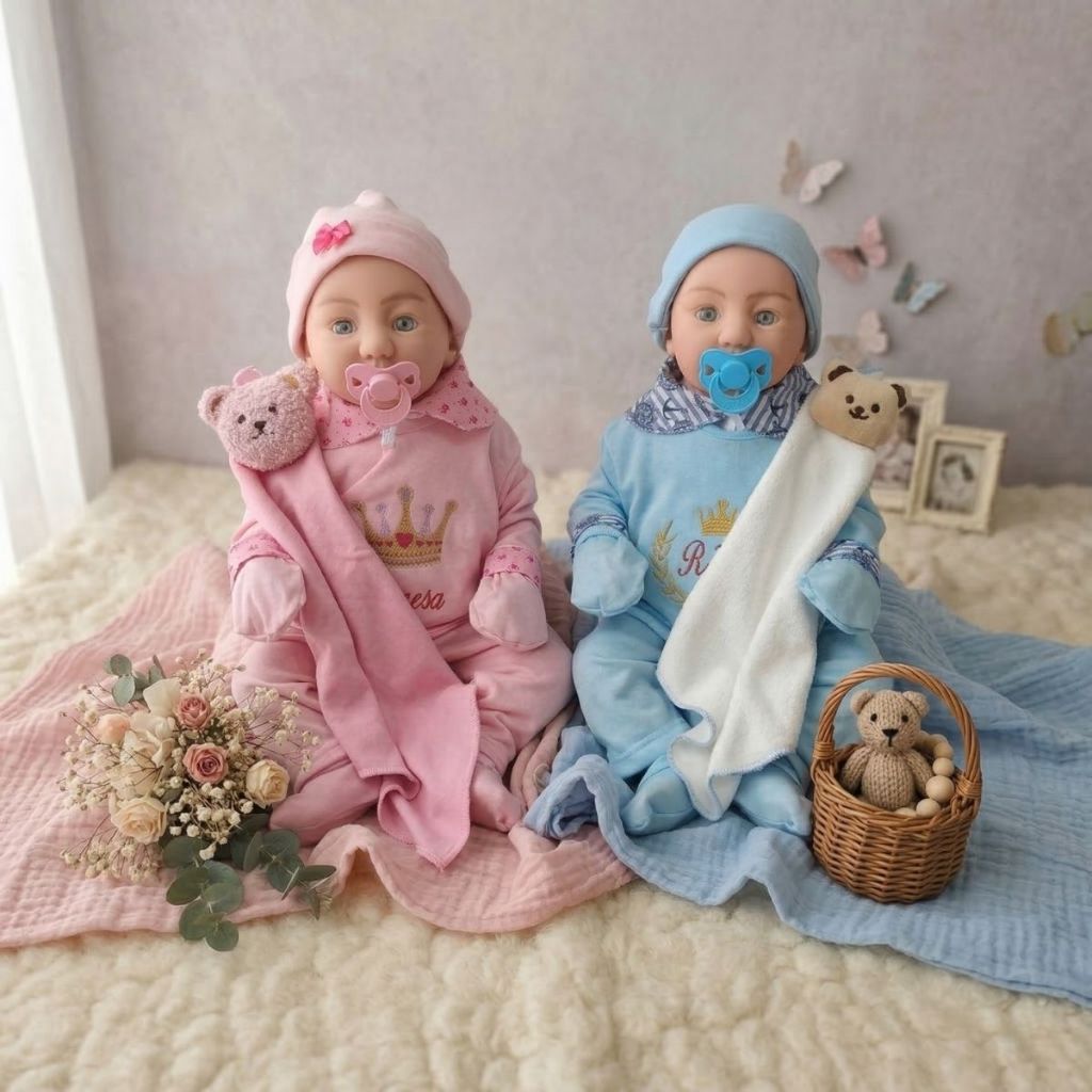 2 Bonecas Bebe Mamãe Reborn Casal Gemeos Naninha Bolsa