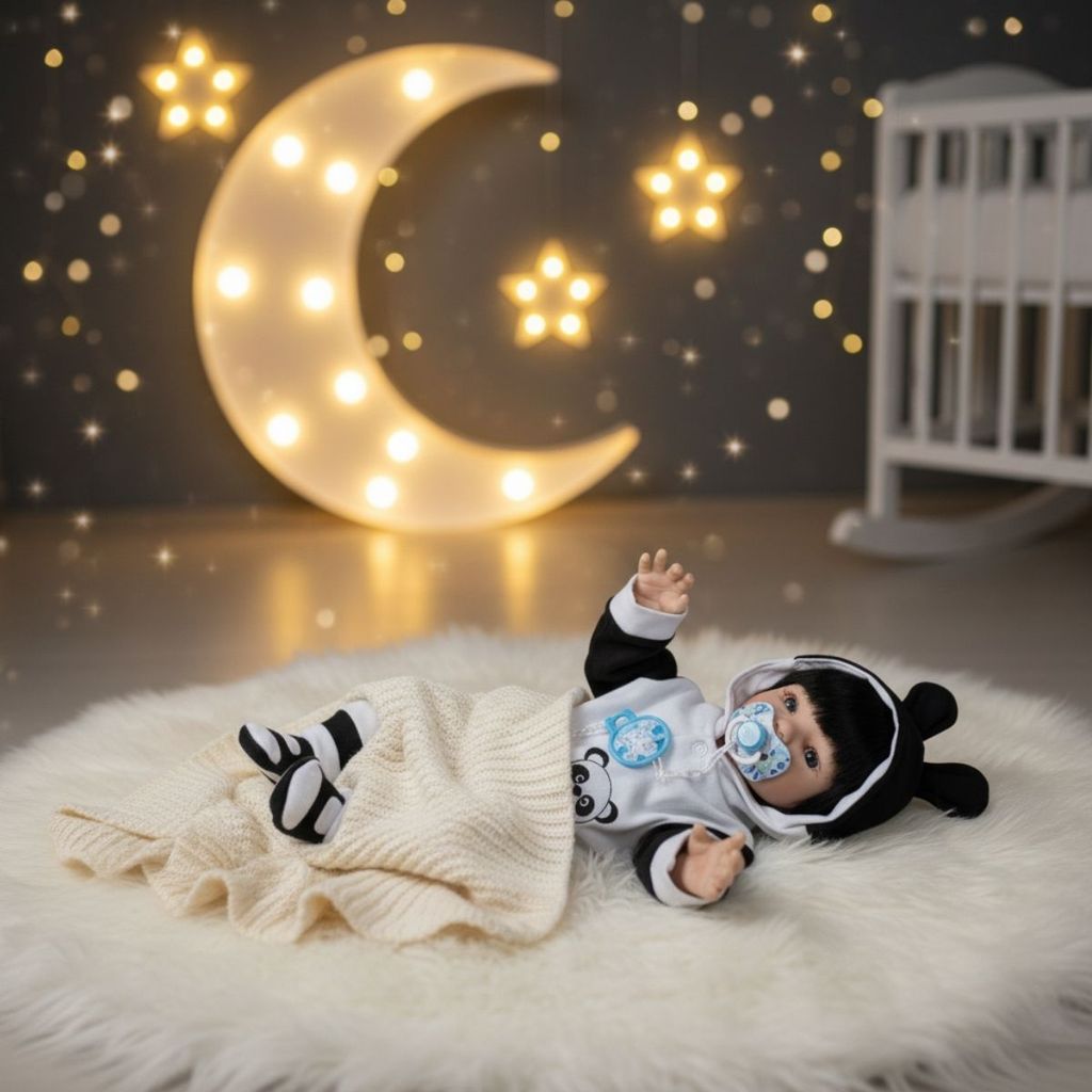 Bebe Reborn Menino 100% Silicone Boneco Original Panda Cabelos Pretos Olhos Azuis Mamãe Reborn