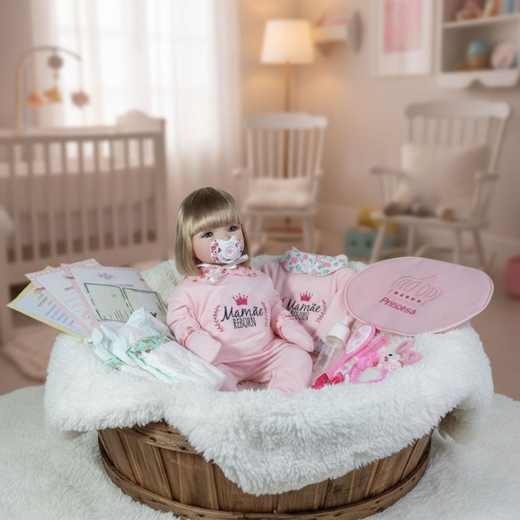 Boneca Bebê Reborn Realista Menina Silicone 48cm + Enxoval | Bolsa | Roupa e Acessórios Mamãe Reborn