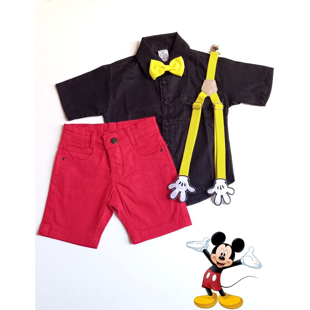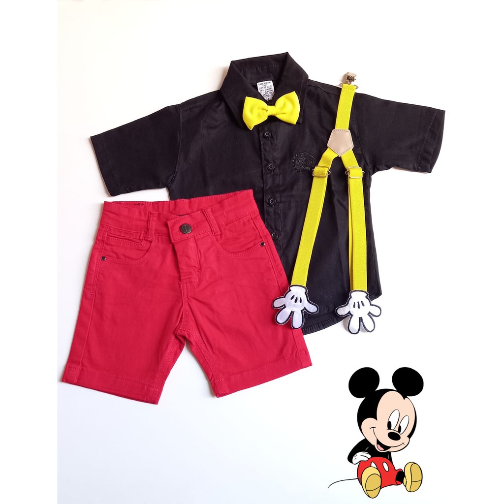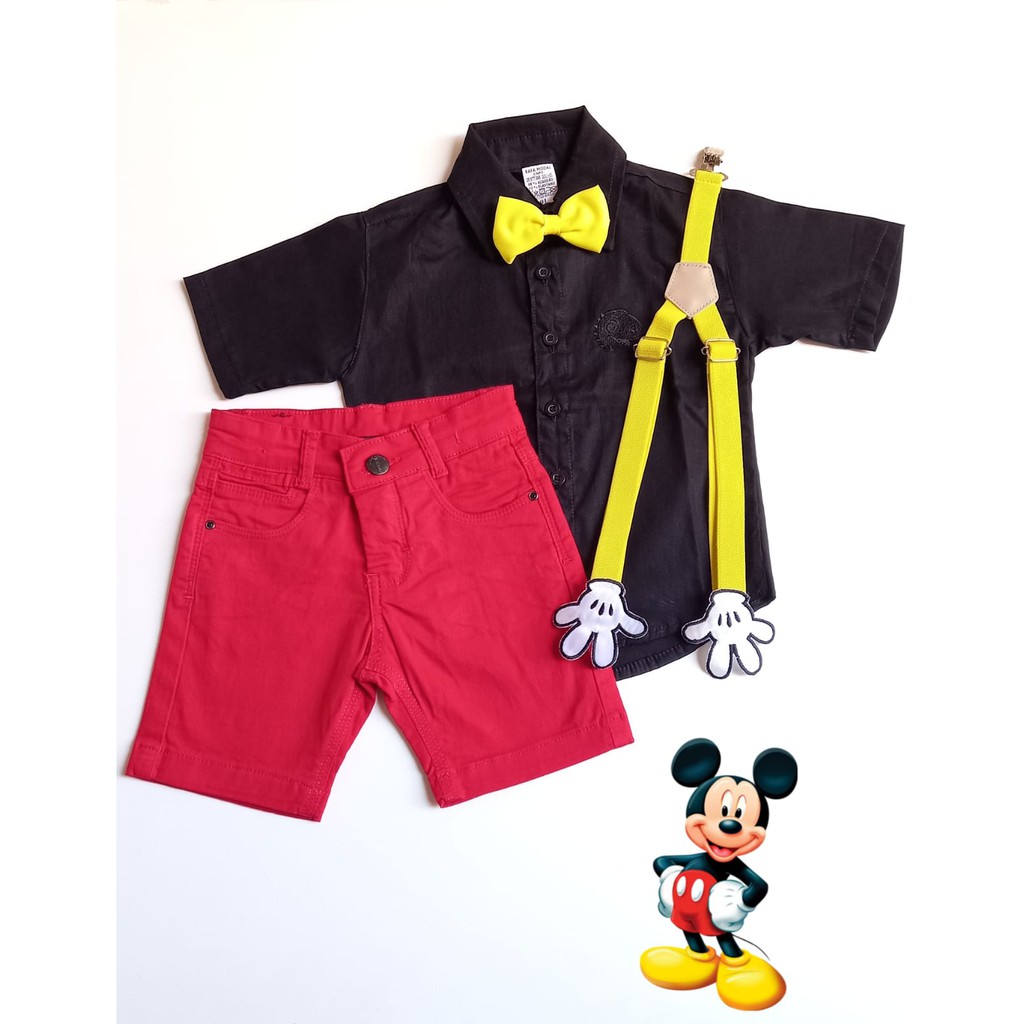 Roupa Aniversário Menino Fantasia Mickey Primavera com o Suspensório Temático