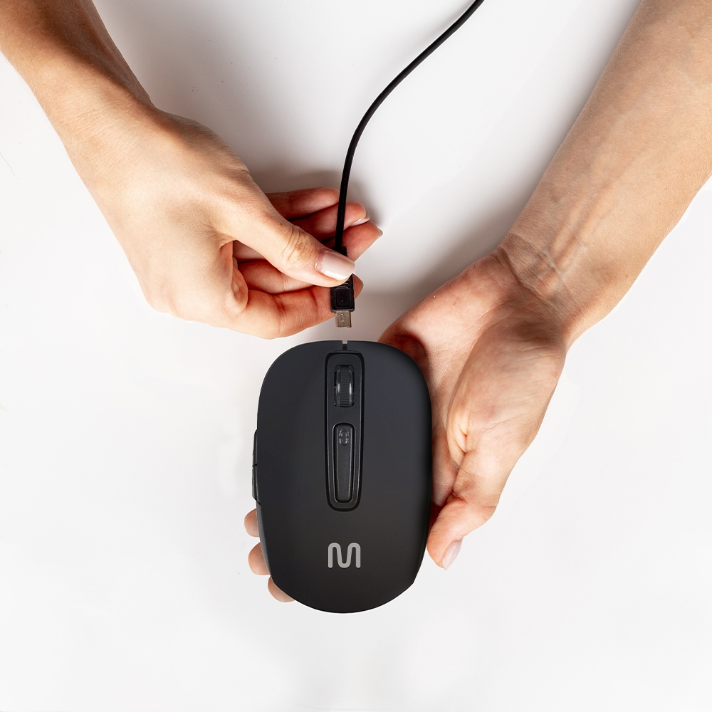 Mouse Sem Fio Recarregável 250mah 1600dpi Ajustável 6 Botões Preto Multi - MO277