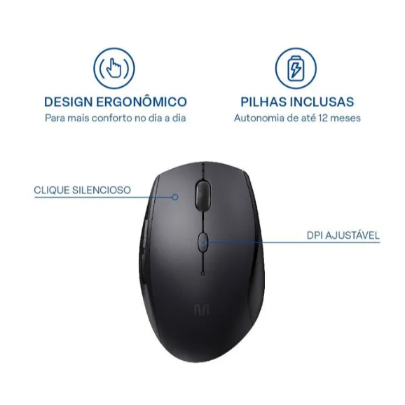 Mouse Sem Fio MS400 DPI Ajustavel 6 Botões e Clique Silencioso Preto Multi - MO381
