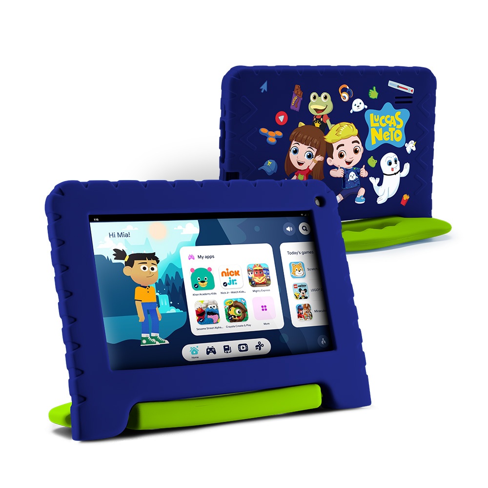 Tablet Multi Luccas Neto com Controle Parental 7 pol 4GB RAM 64GB Android 13 Quad Core + Case + Wi-fi - NB423
