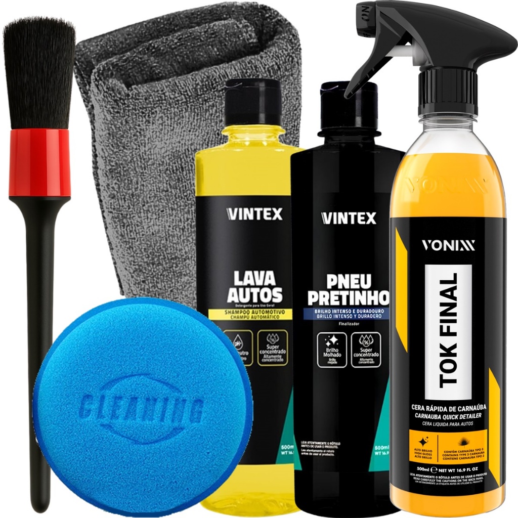 Kit Lavagem Vonixx Automotiva Carro e Moto Shampoo Lava Autos Cera Tok Final Pneu Pretinho e Acessórios Karbox