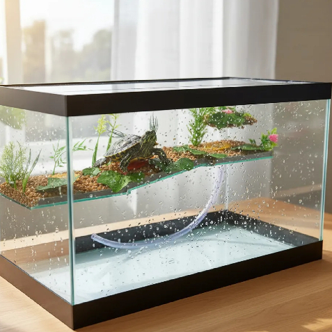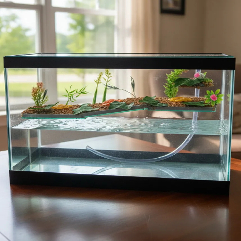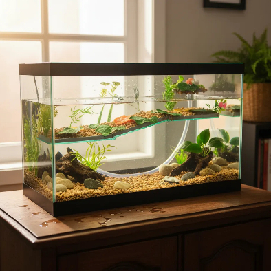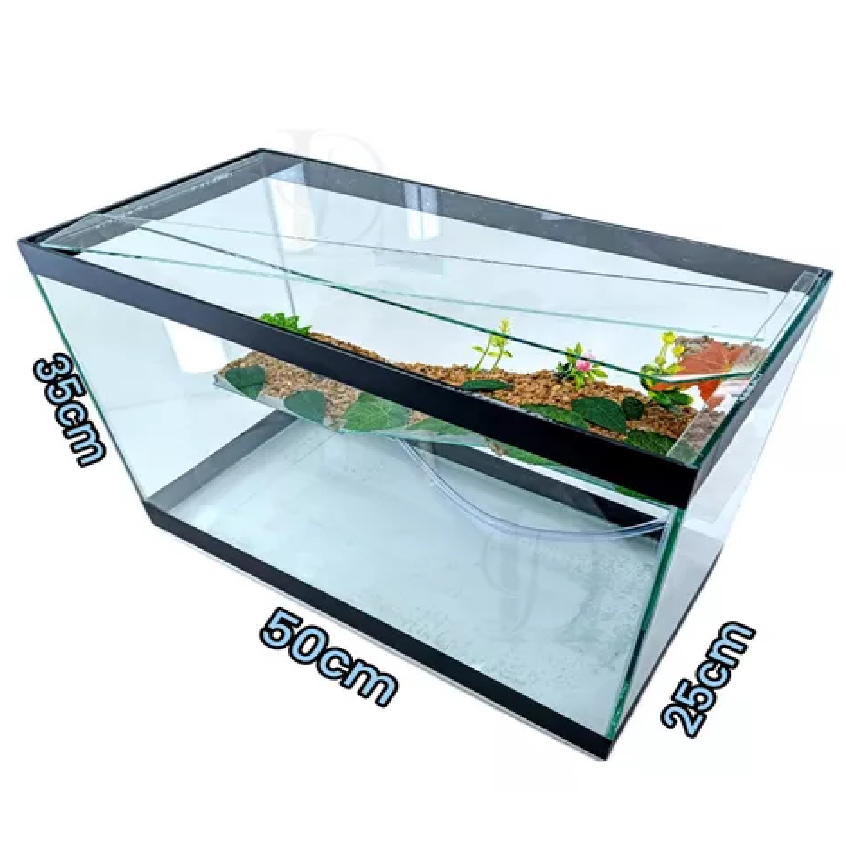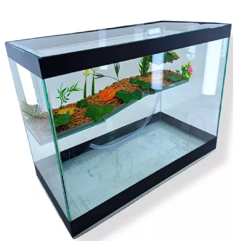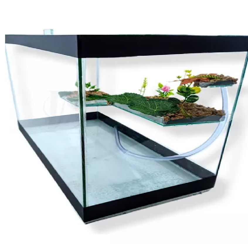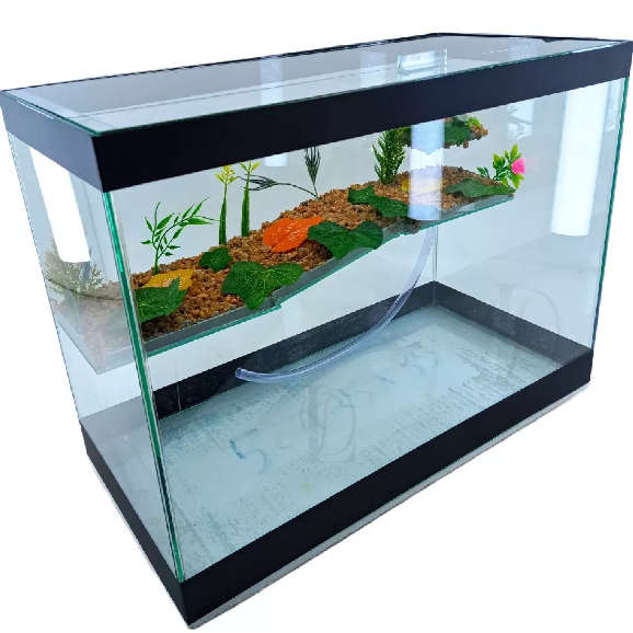 Terrário n7 Grande Aquário Retangular 43 Litros para Tartarugas Jabuti Peixes Rampa Decorado