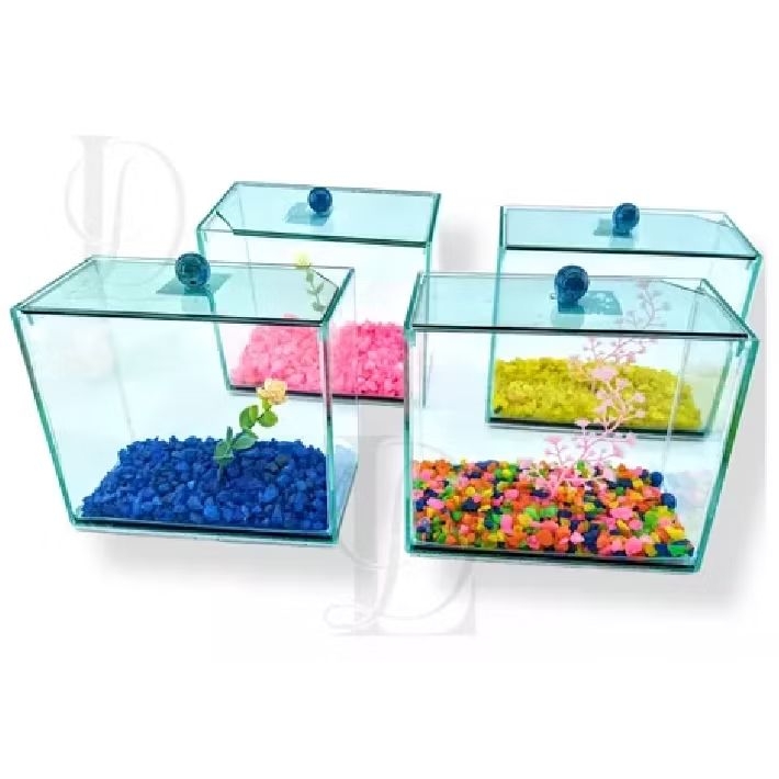 Aquário retangular 17x09x13 Beteira Decorado Pedras Planta Artificial Tubular Peixe ornamental betas