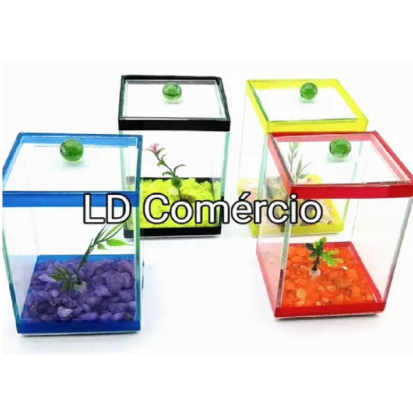 10 Beteiras 10X10X15cm Vidro Aquários Decorado Peixes Beta