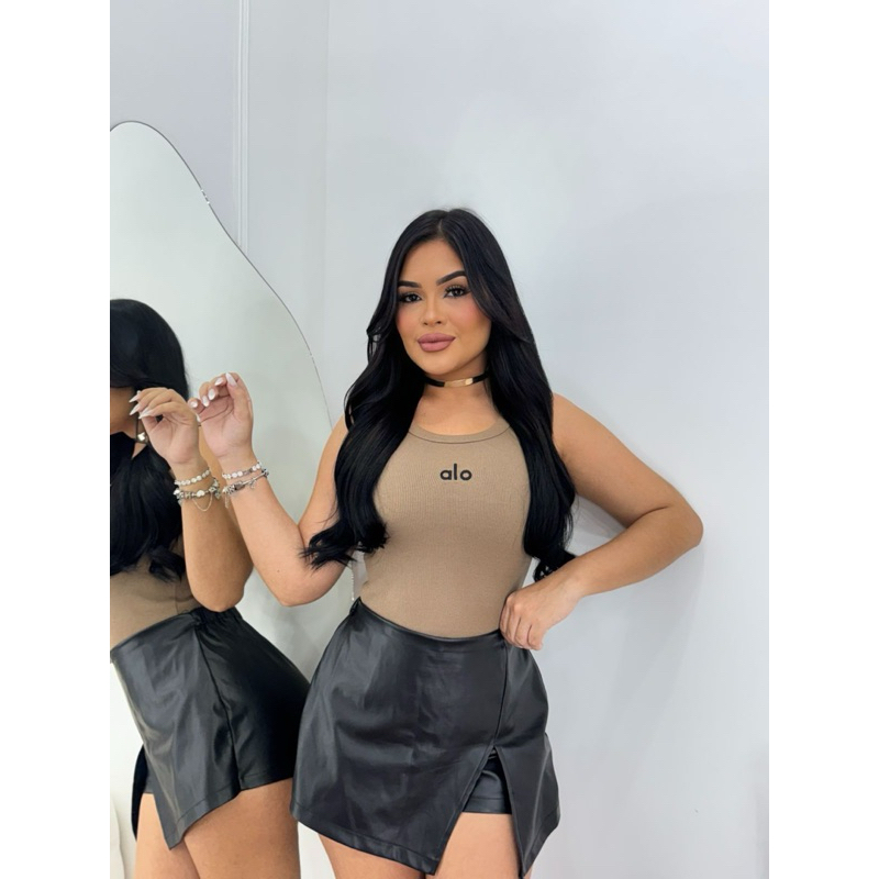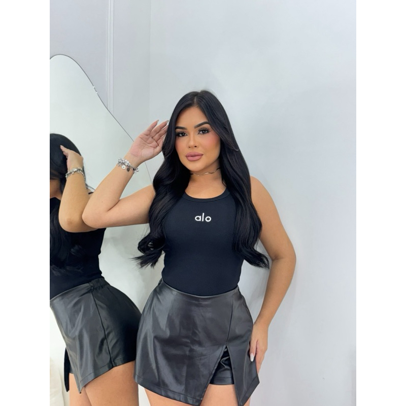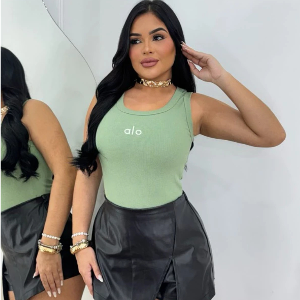 Regata Canelada AloFeminina Comprida Básica Ribana Academia, Treino e Dia a Dia