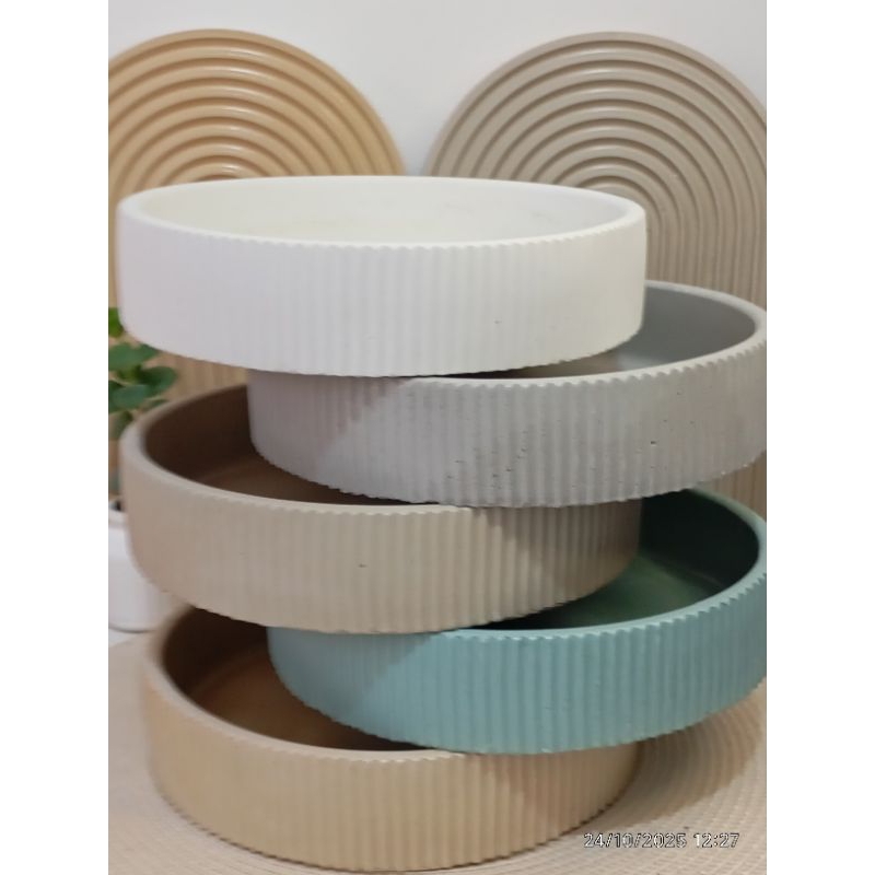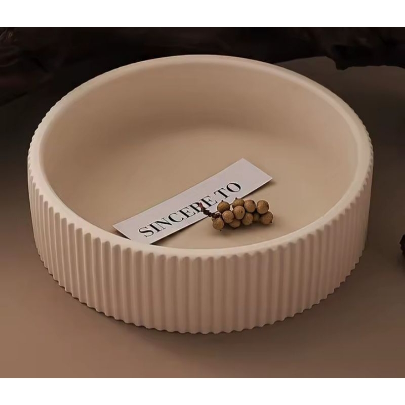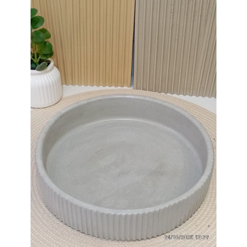 Bandeja canelada alta 23cm, em concreto, fruteira, tigela, organizador, vaso de plantas, em concreto.