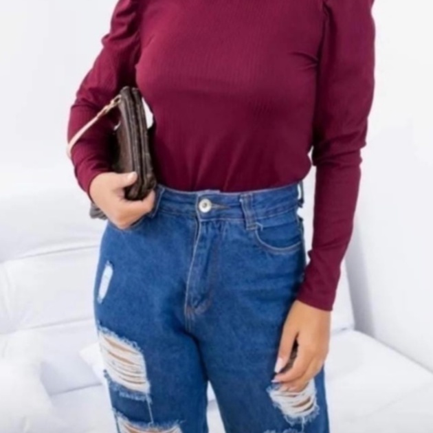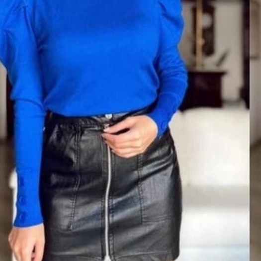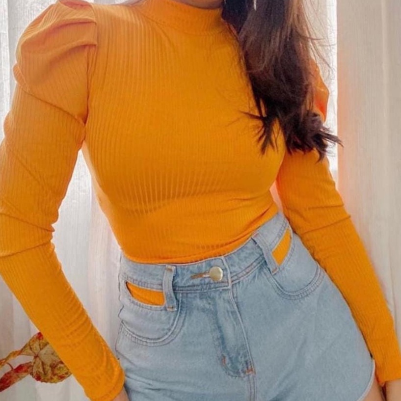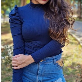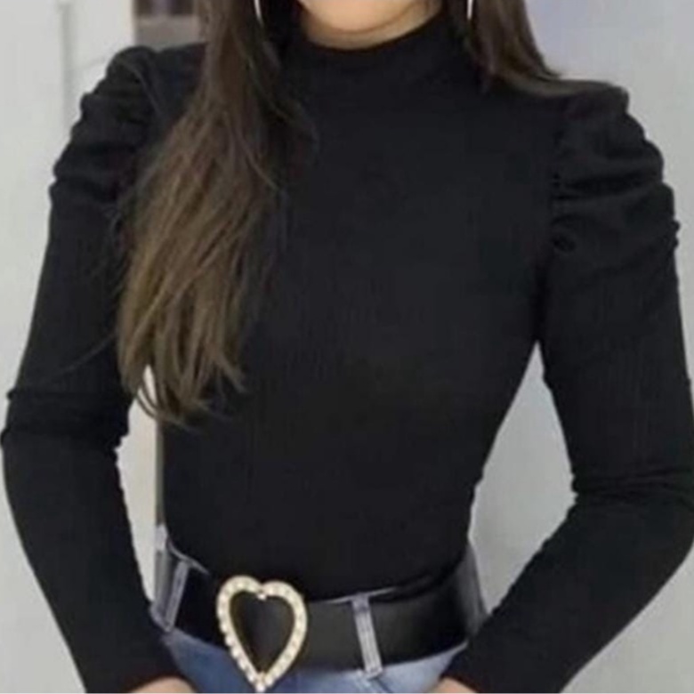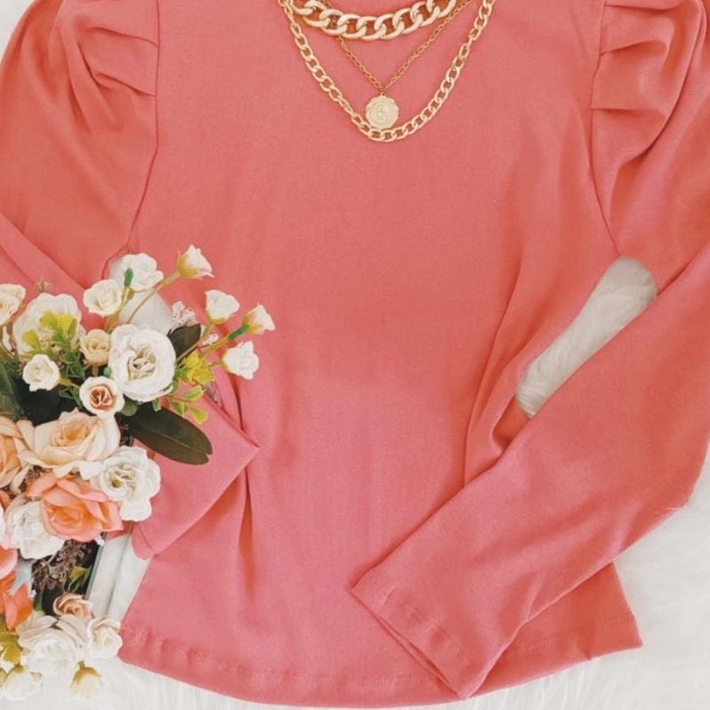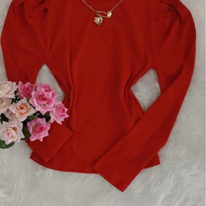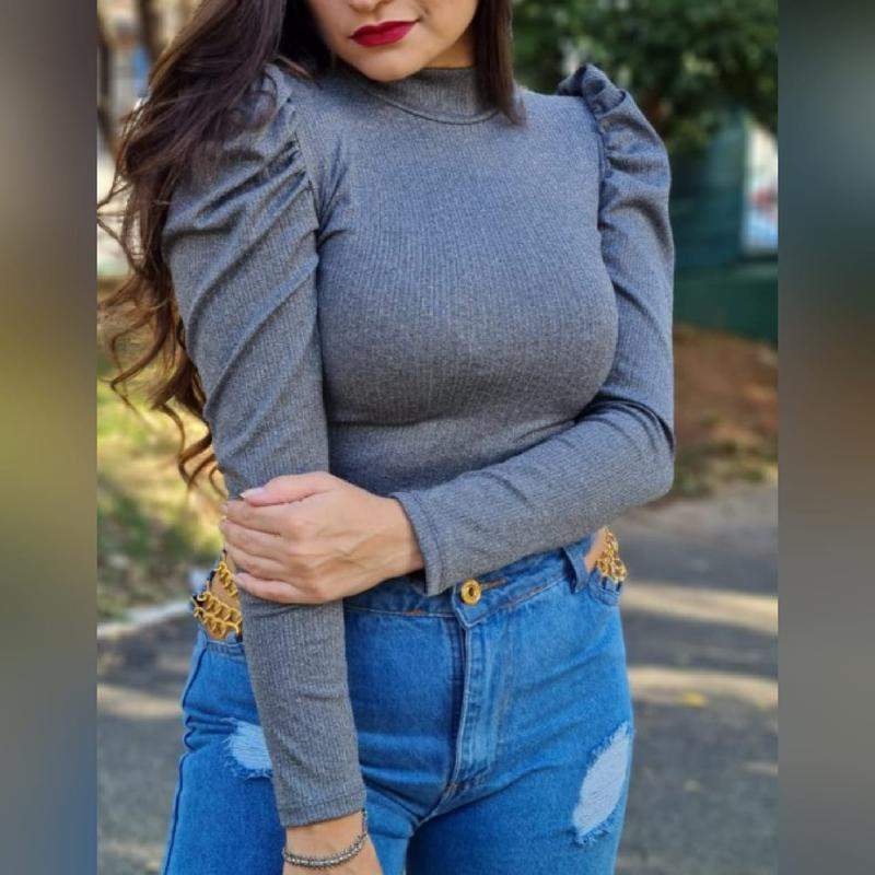 Blusa Feminina Manga Longa Canelada Manga Princesa
